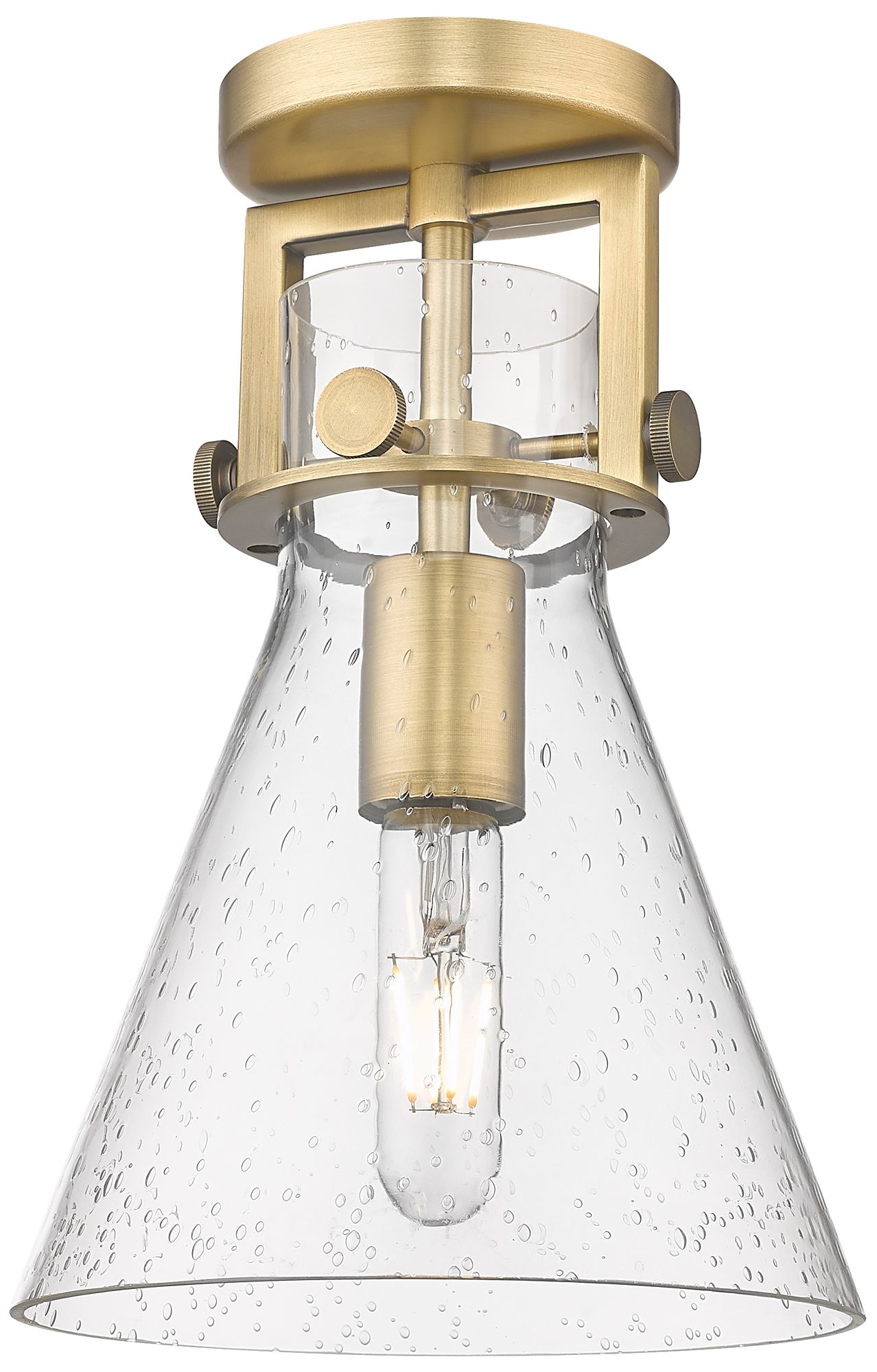 Newton Cone 8" Wide Brushed Brass Flush Mount with Seedy Shade