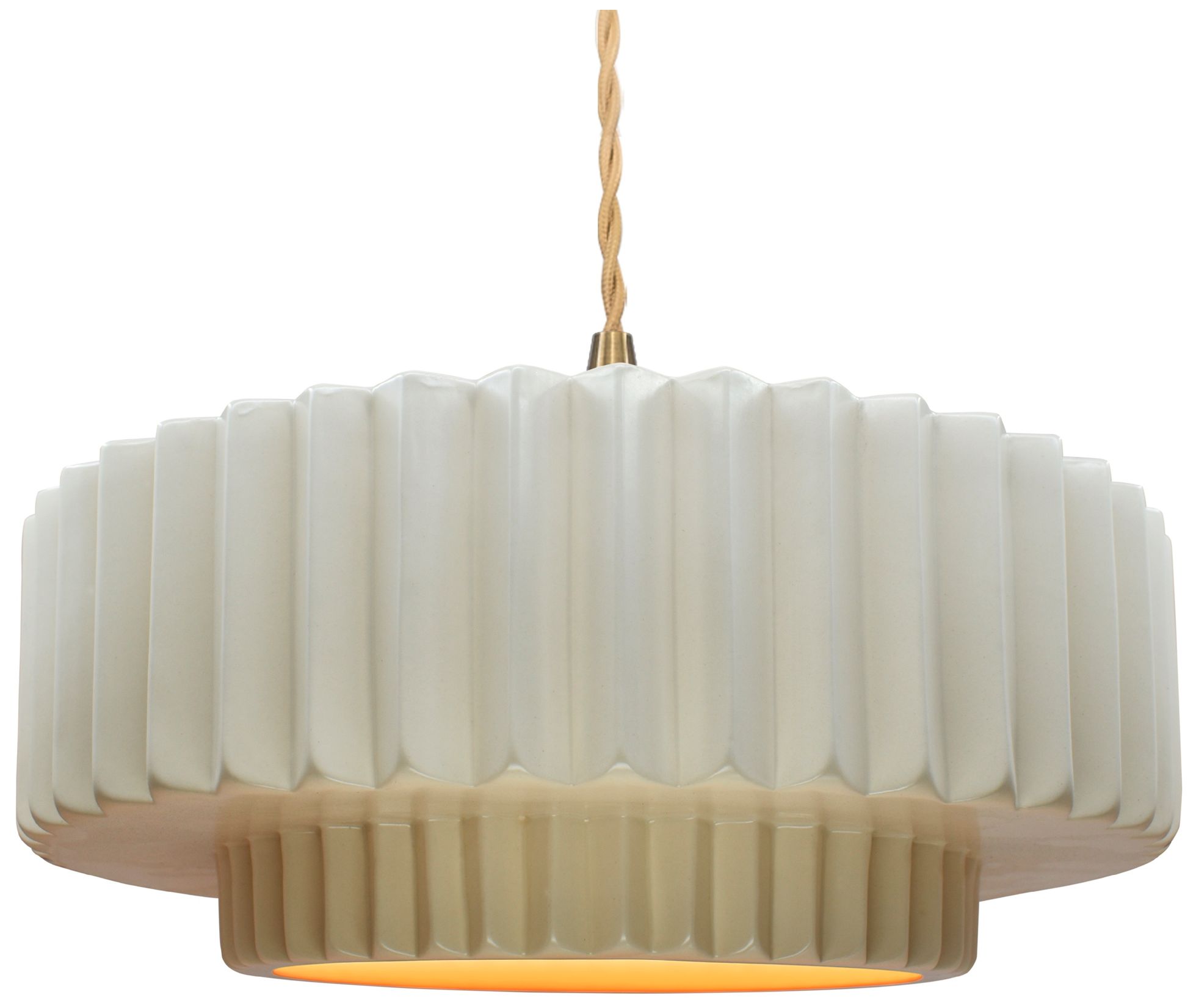 16"W Matte White/Gold Frame Brass Large Tier Pleated Twisted Pendant