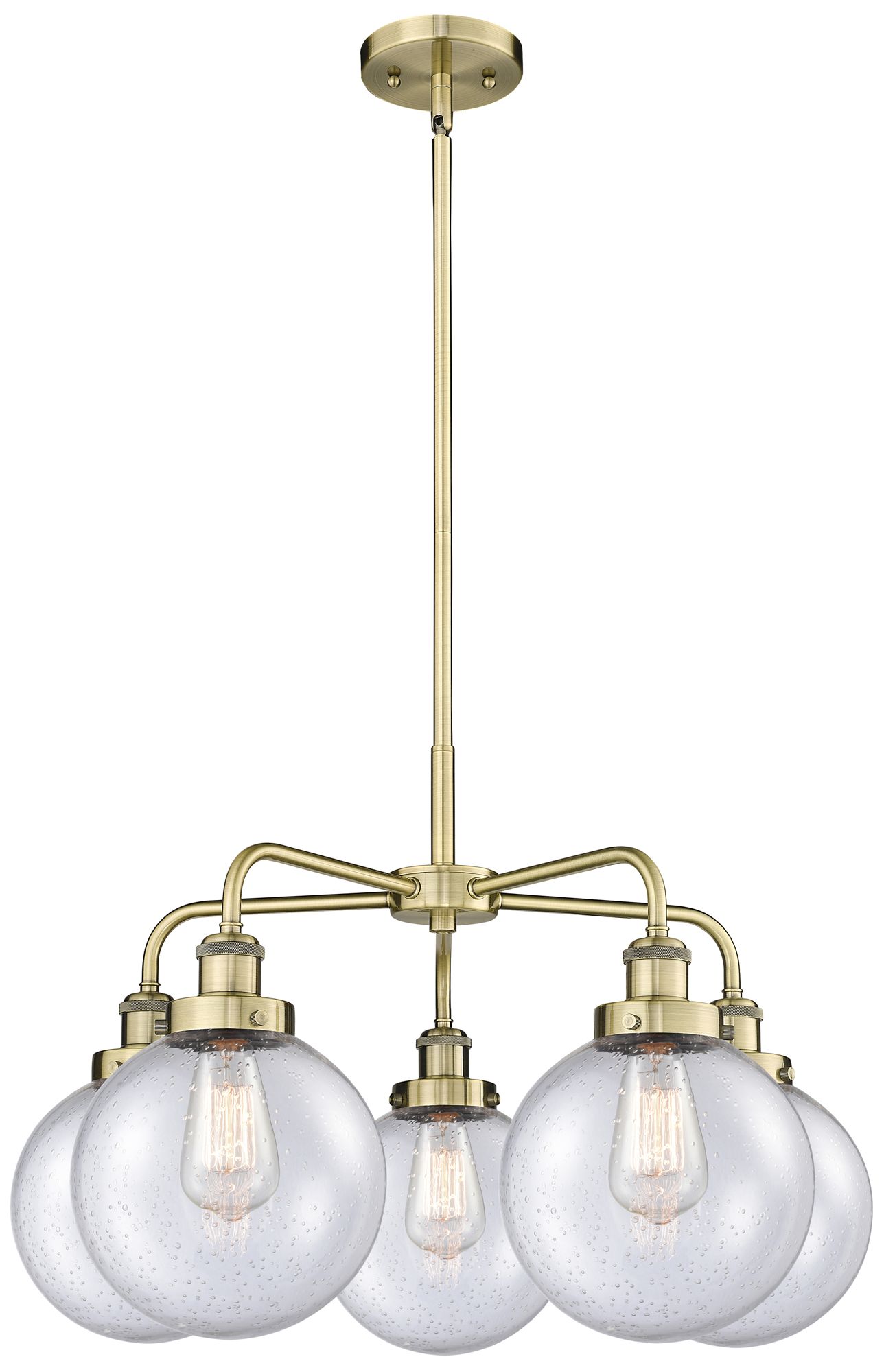 Beacon 26"W 5 Light Antique Brass Stem Hung Chandelier w/ Seedy Glass