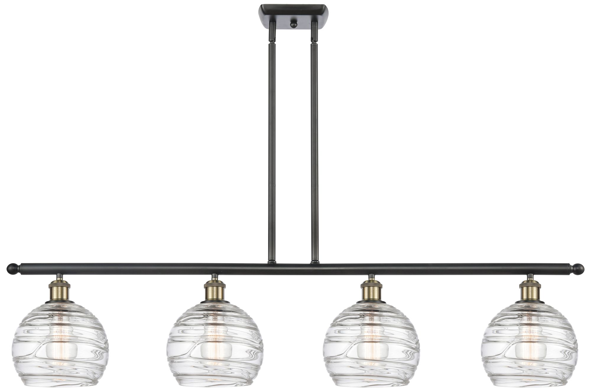 Ballston Athens 48"W 4 Light Black Brass Island Light w/ Deco Swirl Sh