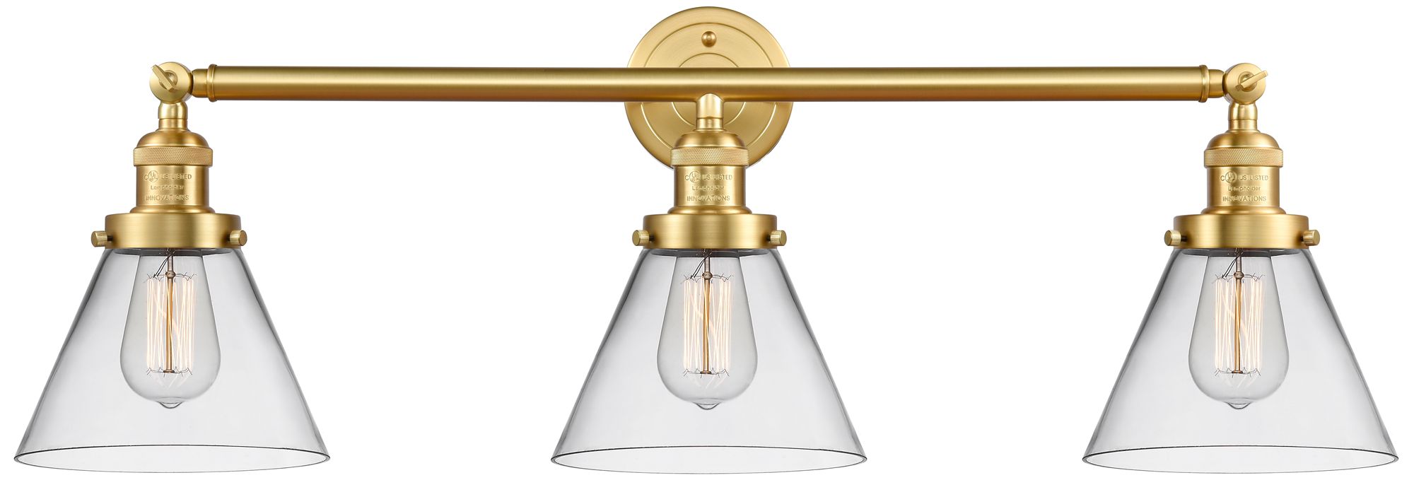Cone 32" 3-Light Satin Gold Bath Light w/ Clear Shade