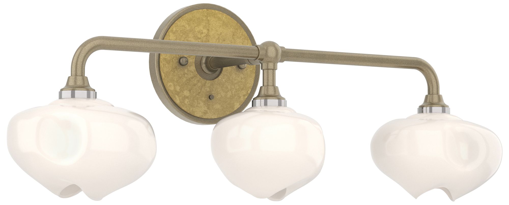 Ume 22"W 3-Light Brass Accented Curved Arm Gold Sconce w/ Frosted Shad