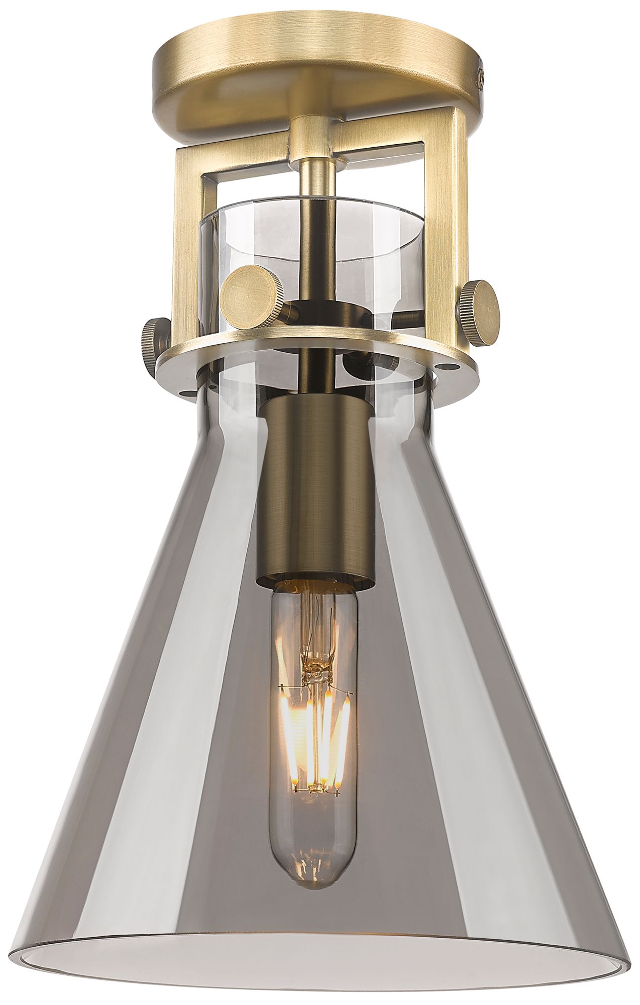 Newton Cone 8" Wide Brushed Brass Flush Mount with Smoke Shade