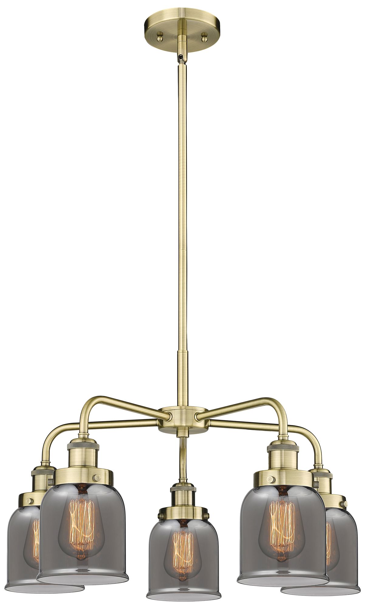 Bell 23"W 5 Light Antique Brass Stem Hung Chandelier w/ Smoke Glass Sh