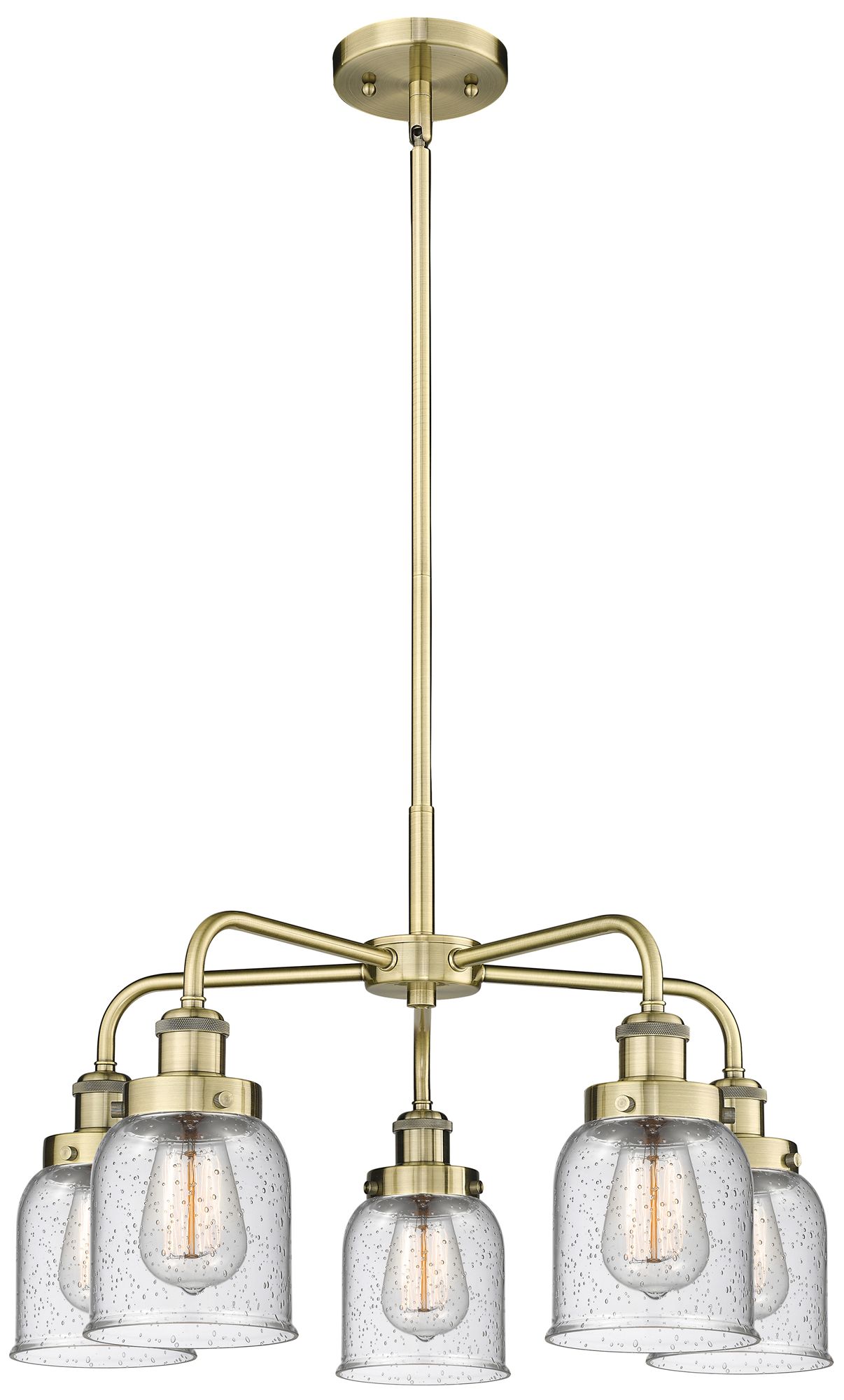 Bell 23"W 5 Light Antique Brass Stem Hung Chandelier With Seedy Glass