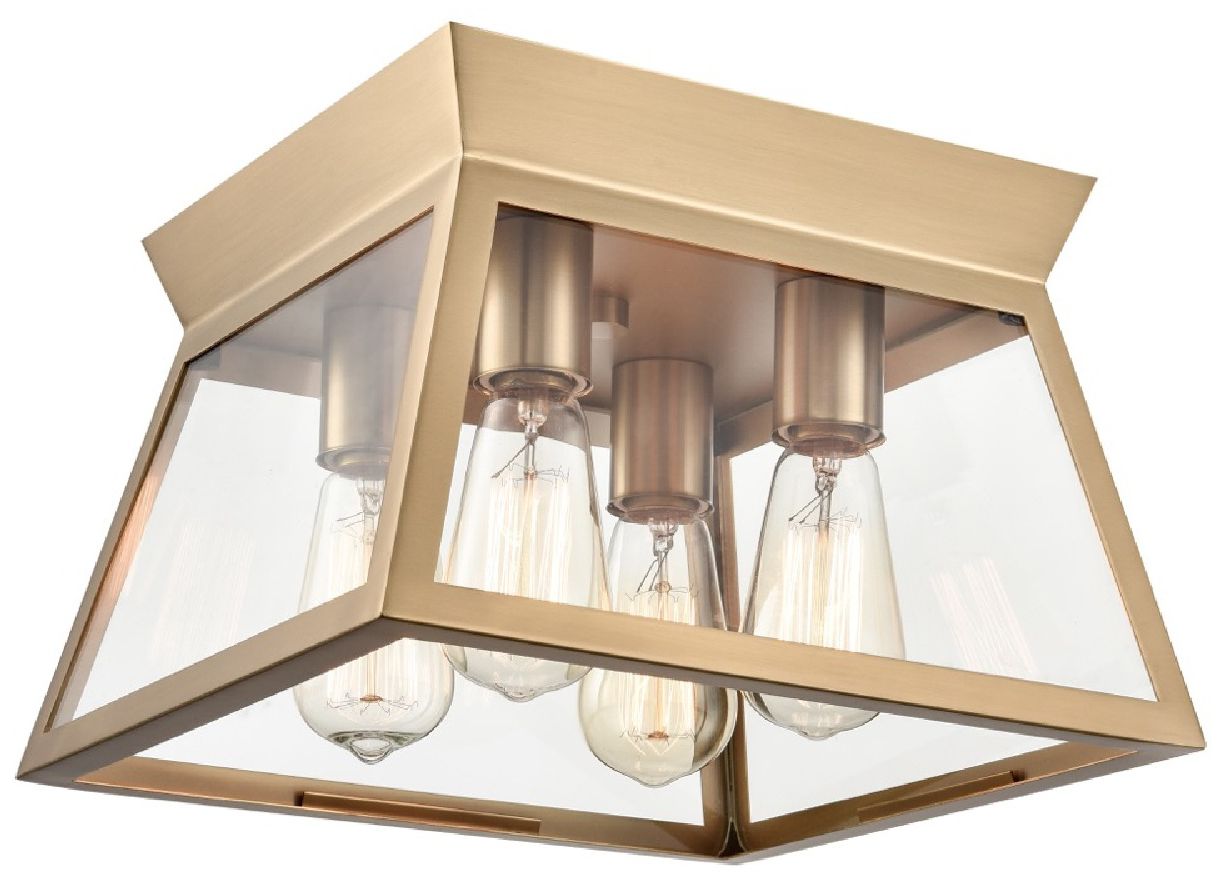 Lucian 12" Wide 4-Light Brushed Brass Flush Mount With Clear Glass Sha
