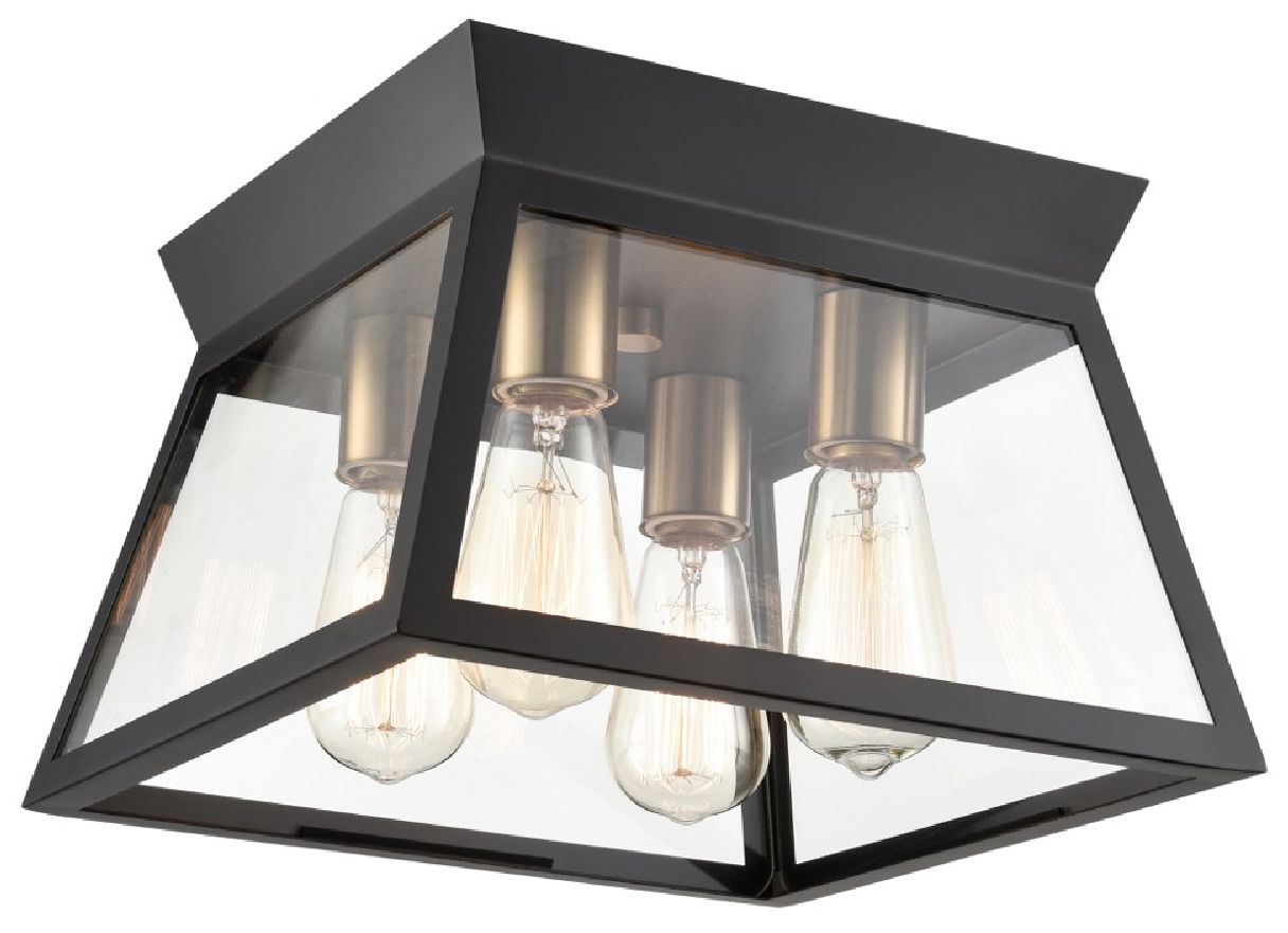 Lucian 12" Wide 4-Light Black Flush Mount With Clear Glass Shade