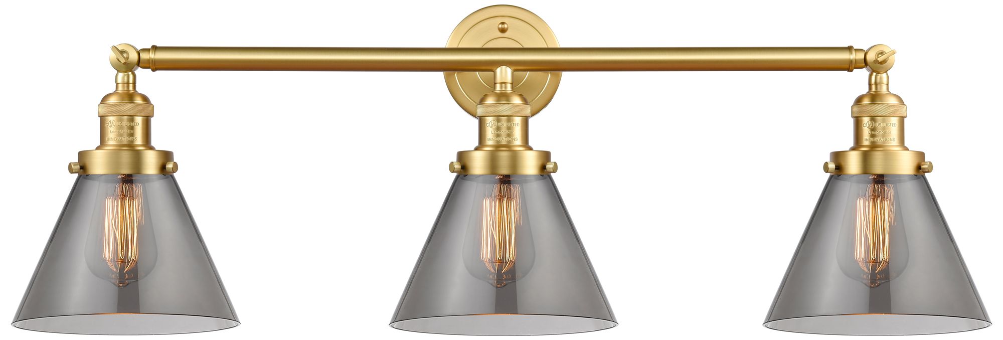 Cone 32" 3-Light Satin Gold Bath Light w/ Plated Smoke Shade