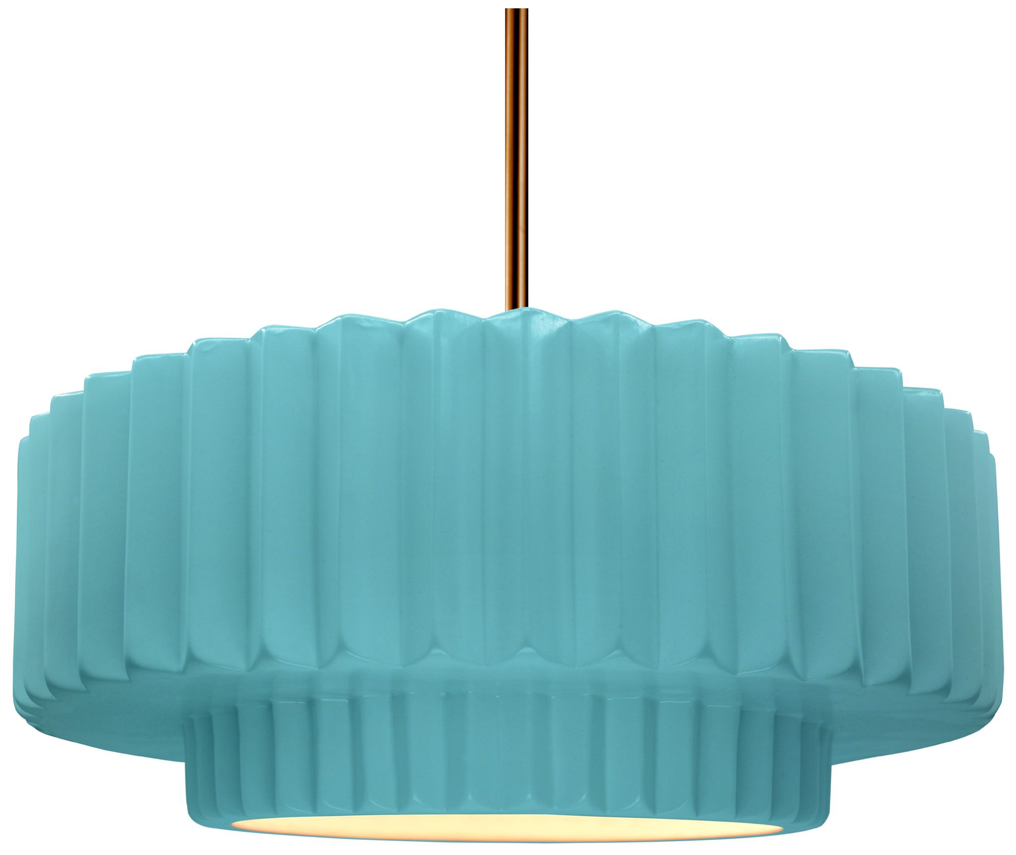16"W Pool Frame Polished Brass Large Tier Pleated Stem Pendant