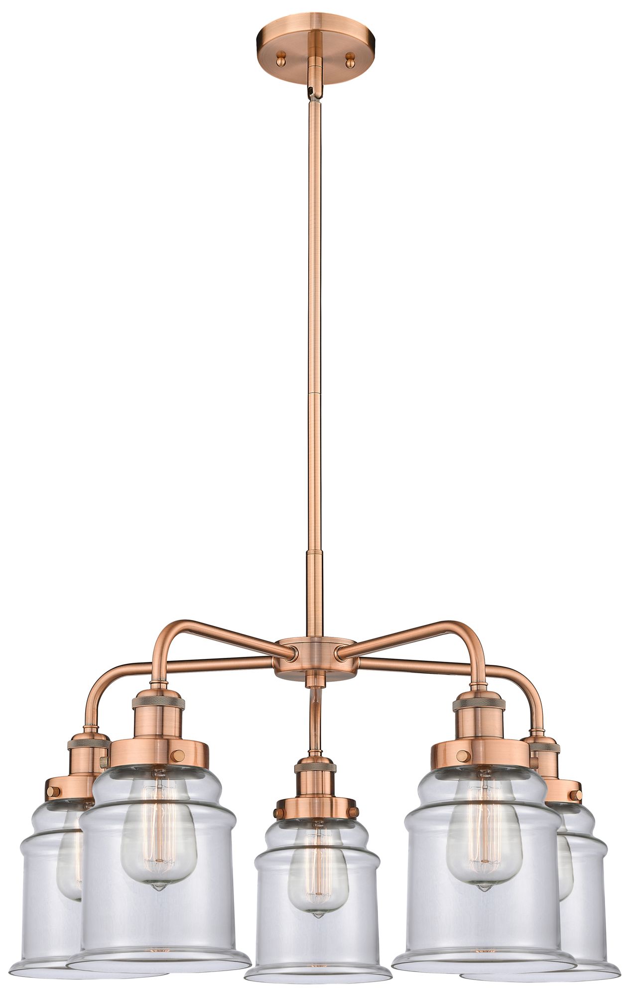 Canton 24"W 5 Light Antique Copper Stem Hung Chandelier w/ Clear Shade
