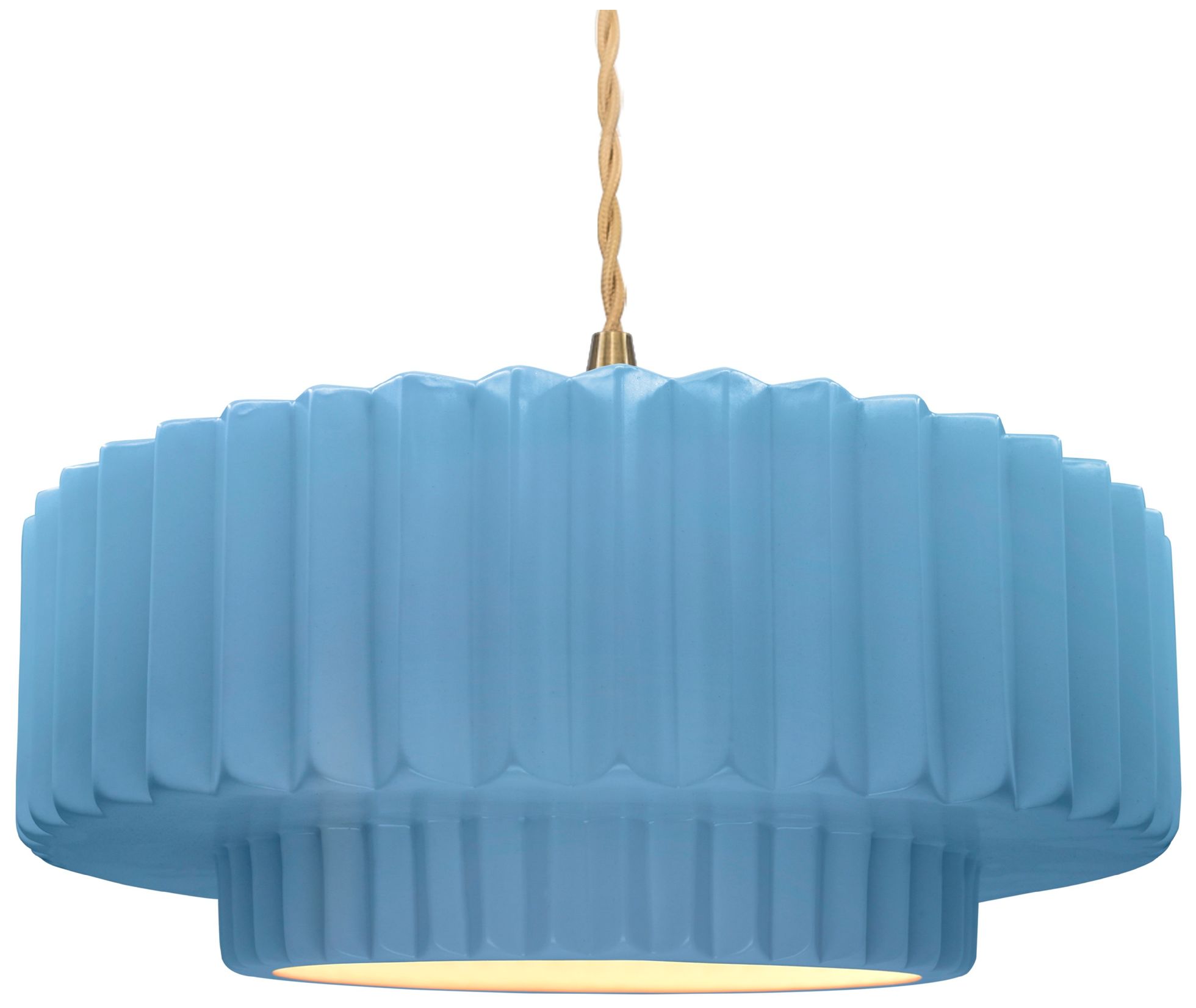 16.25"W Sky Blue Frame Brushed Brass Large Tier Pleated Twisted Pendan