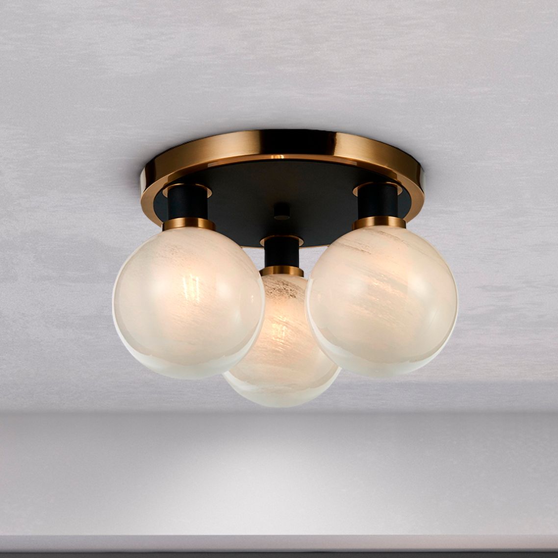 Gem 14.5" Wide 3-Light Black Semi-Flush Mount With Clear Glass Shade