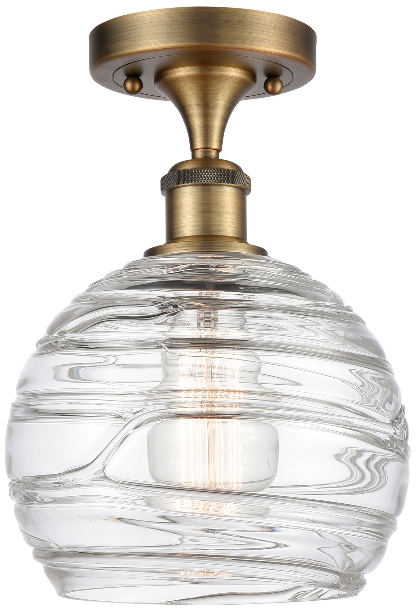 Athens 8" Brushed Brass Semi Flush Mount w/ Clear Deco Swirl Shade