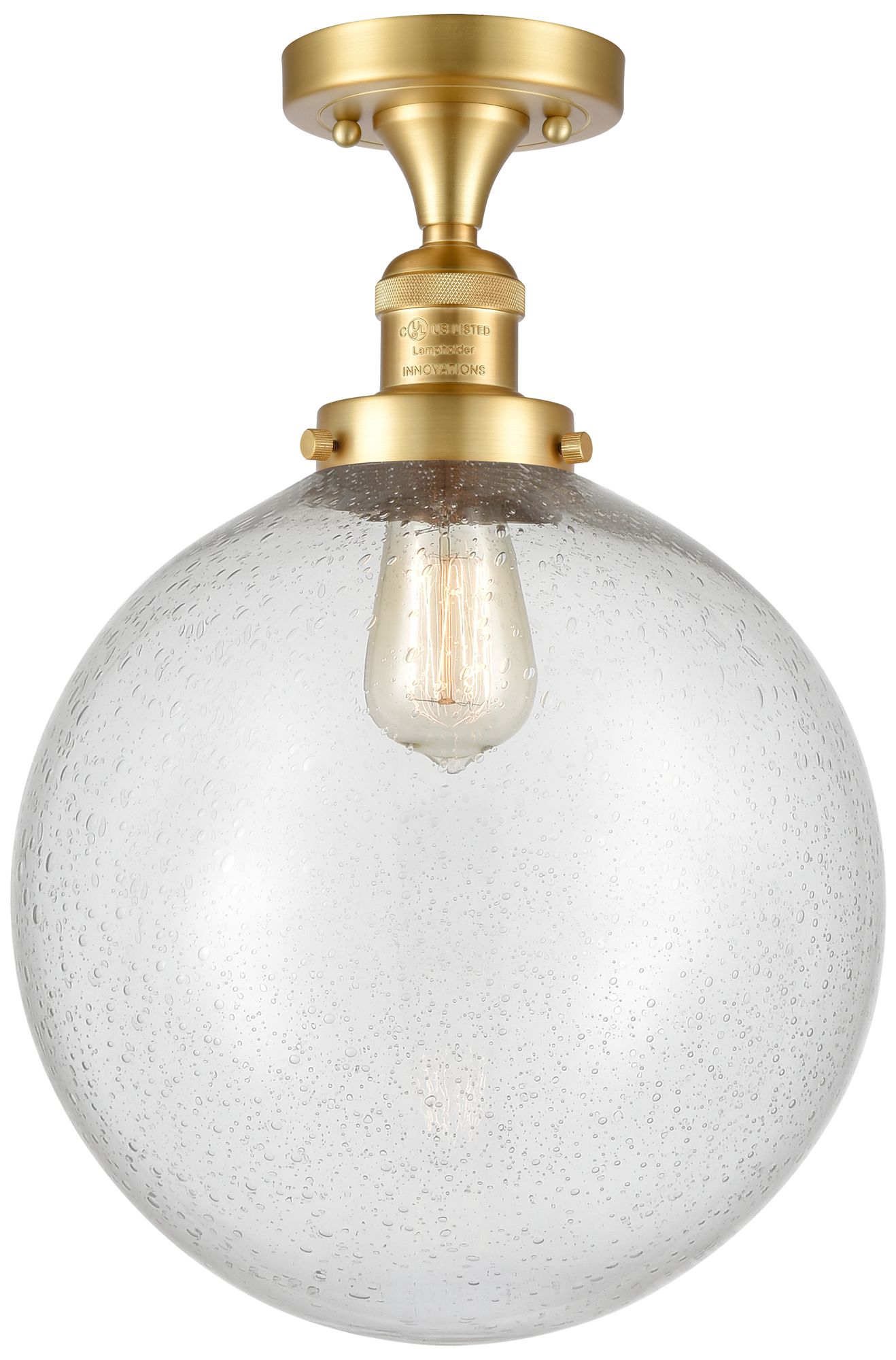 Beacon 12" Wide Satin Gold Semi Flush Mount w/ Seedy Shade