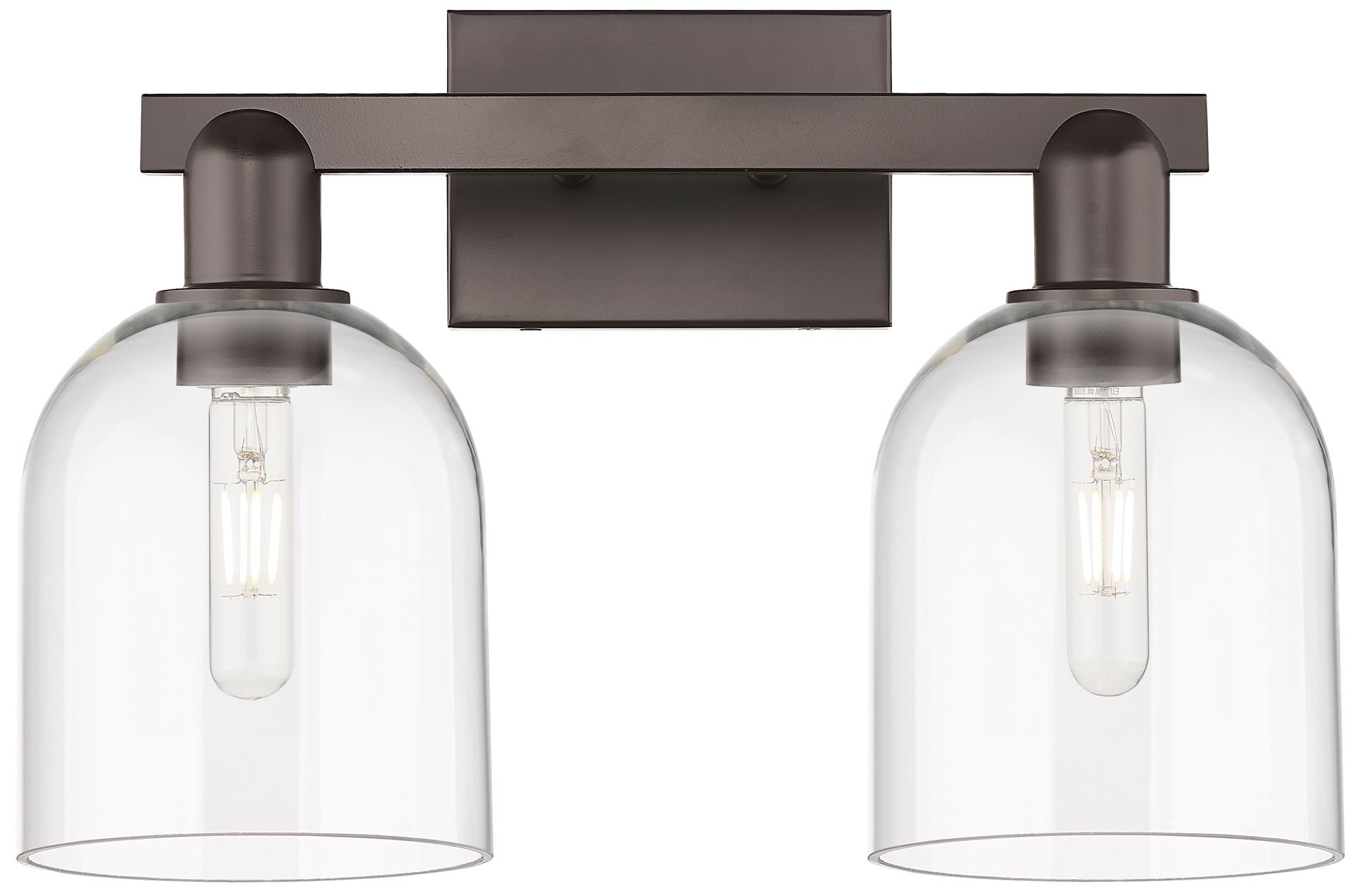 Arcadia Bella 17"W 2 Light Oiled Bronze Vanity Light w/ Clear Shade