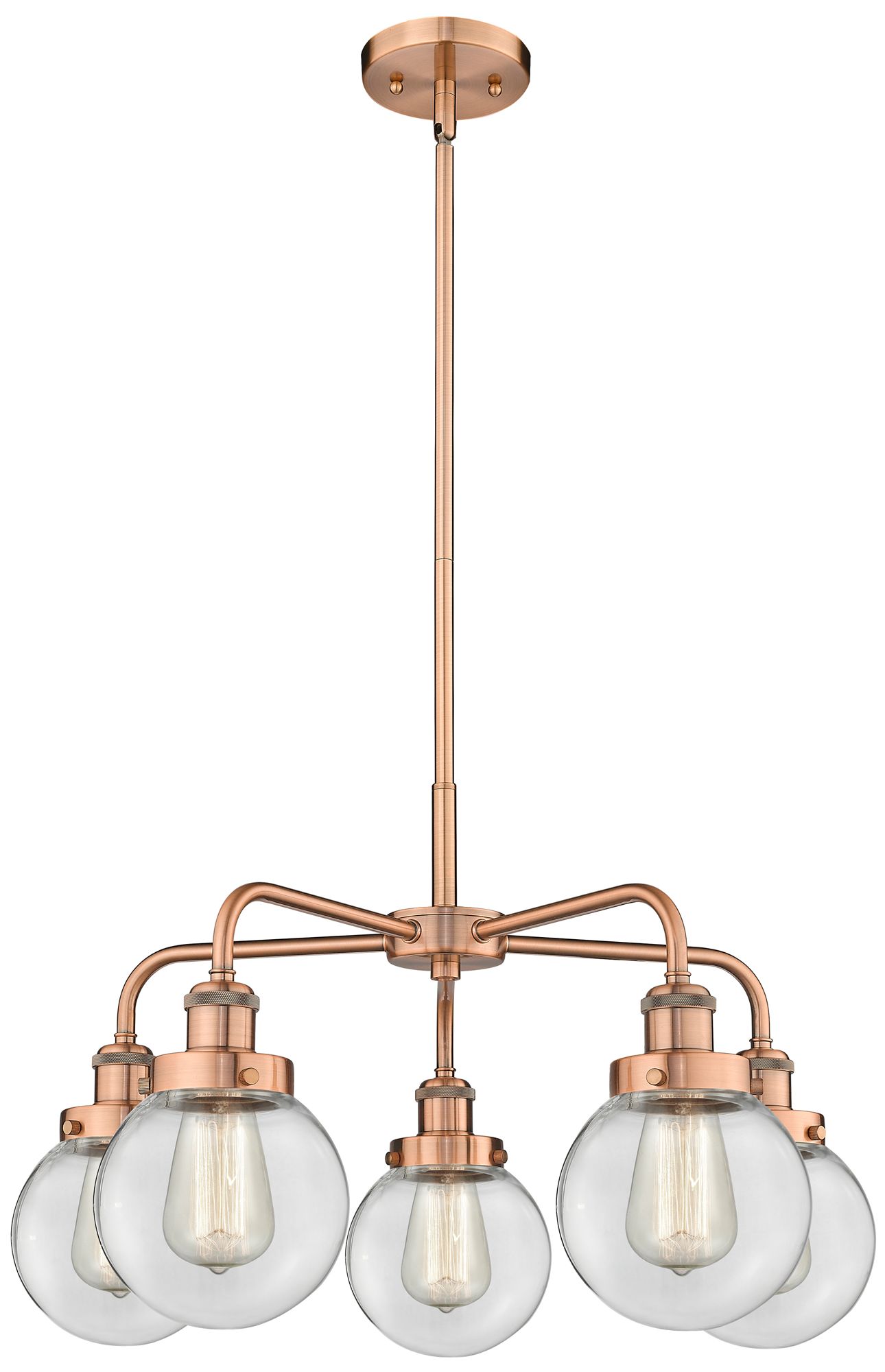 Beacon 24"W 5 Light Antique Copper Stem Hung Chandelier w/ Clear Shade