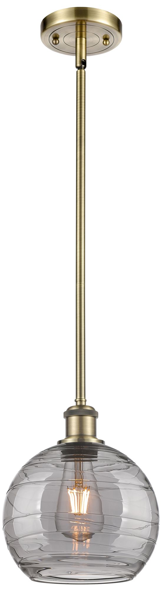 Ballston Athens 8"W Antique Brass Stemmed Mini Pendant w/ Smoke Swirl