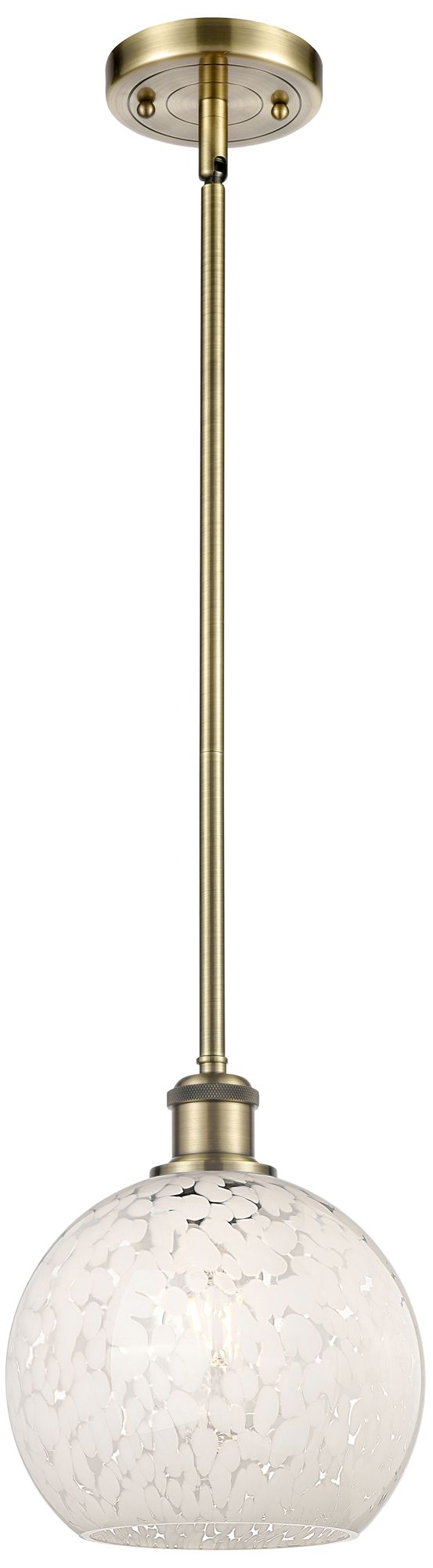 Ballston 8"W Antique Brass Stemmed Mini Pendant w/ White Mouchette Sha
