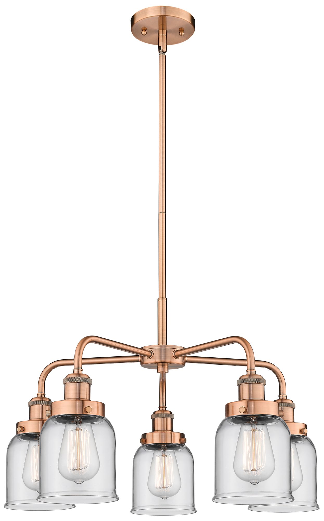 Bell 23"W 5 Light Antique Copper Stem Hung Chandelier w/ Clear Glass S