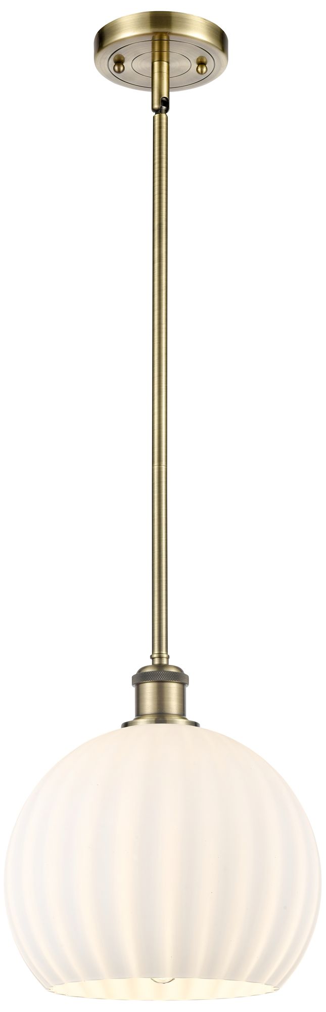 Ballston 10"W Antique Brass Stemmed Mini Pendant w/ White Venetian Sha