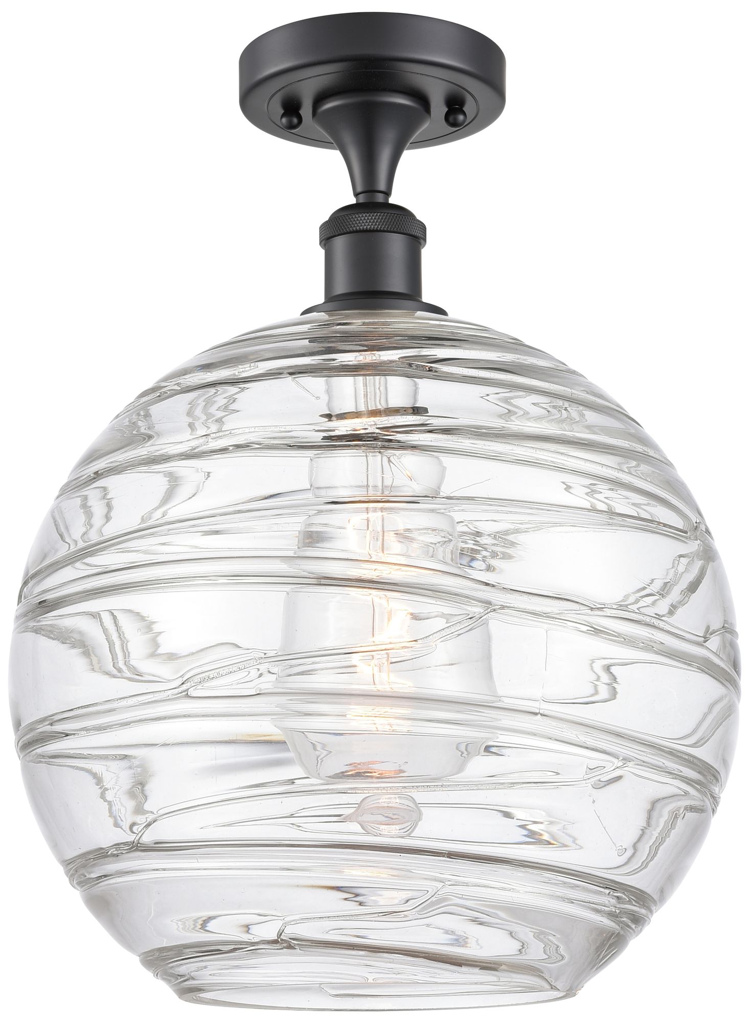 Athens 12" Matte Black Semi Flush Mount w/ Clear Deco Swirl Shade