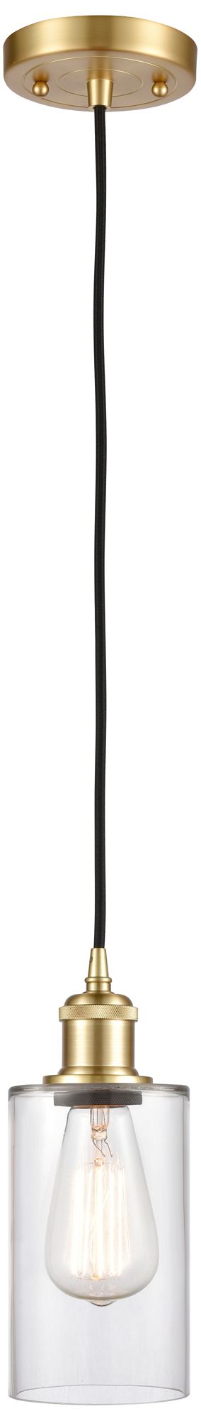 Clymer 4" Satin Gold Cord Hung Mini Pendant w/ Clear Shade
