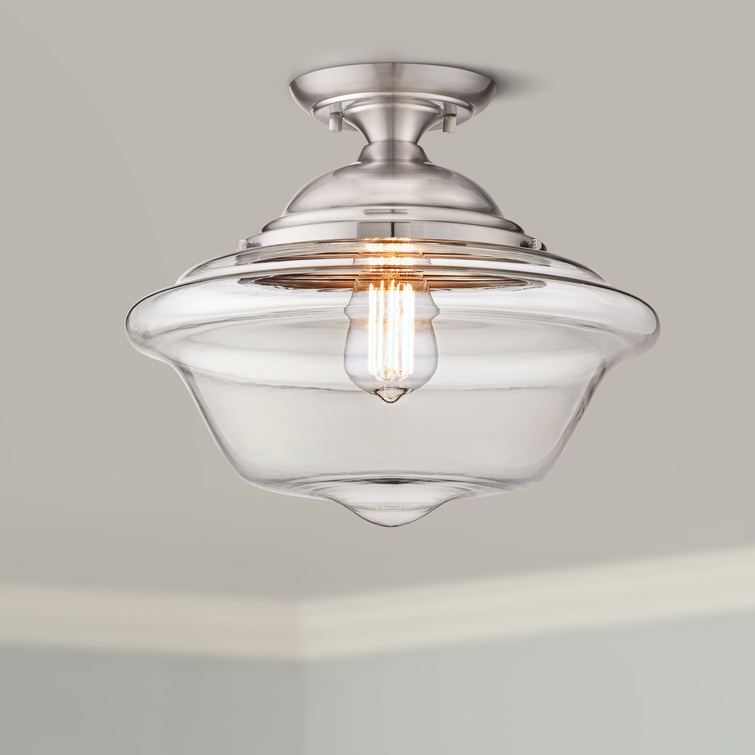 Schoolhouse 13" Wide Brushed Nickel LED Ceiling Light