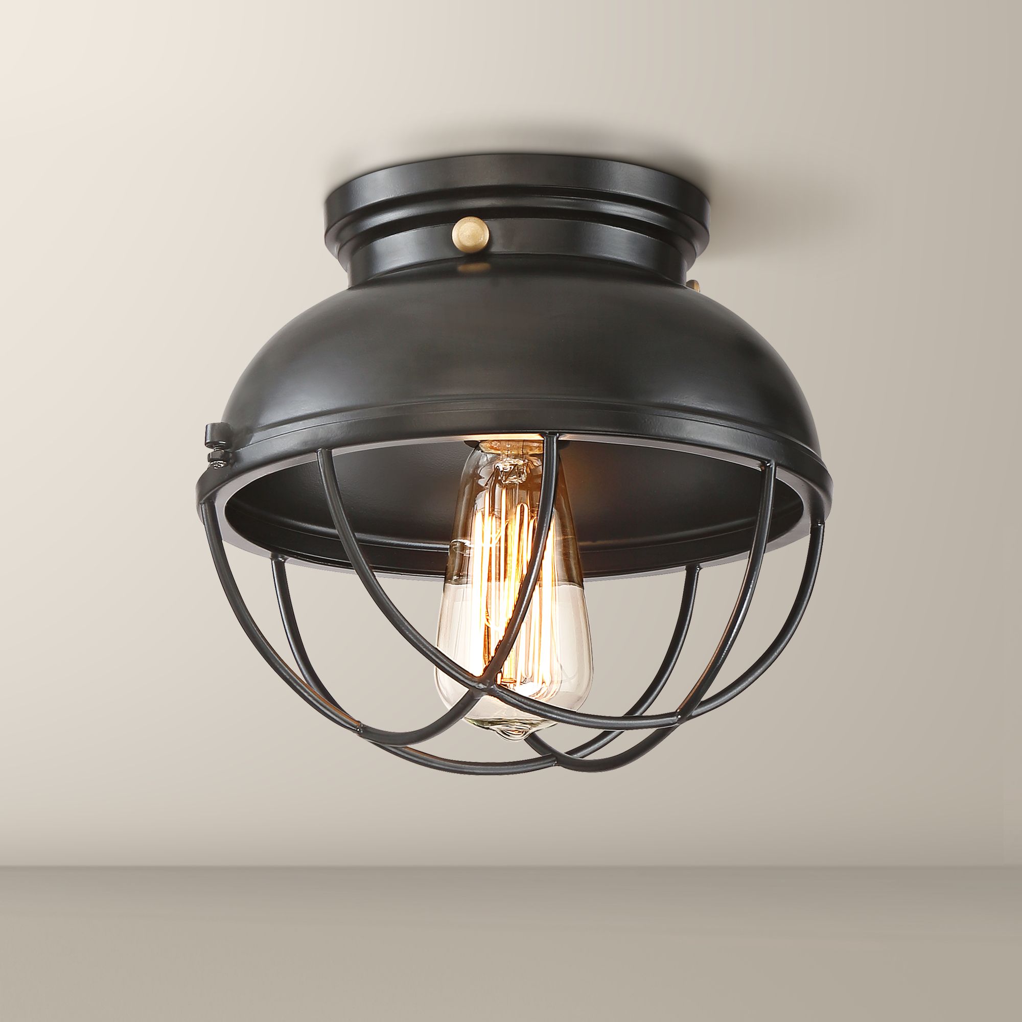 Walton 10 1/2" Wide Black Cage LED Ceiling Light