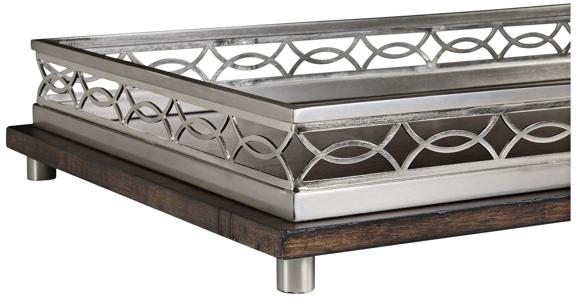 Gualtiero 27" Wide Brushed Nickel and Wood Decorative Tray