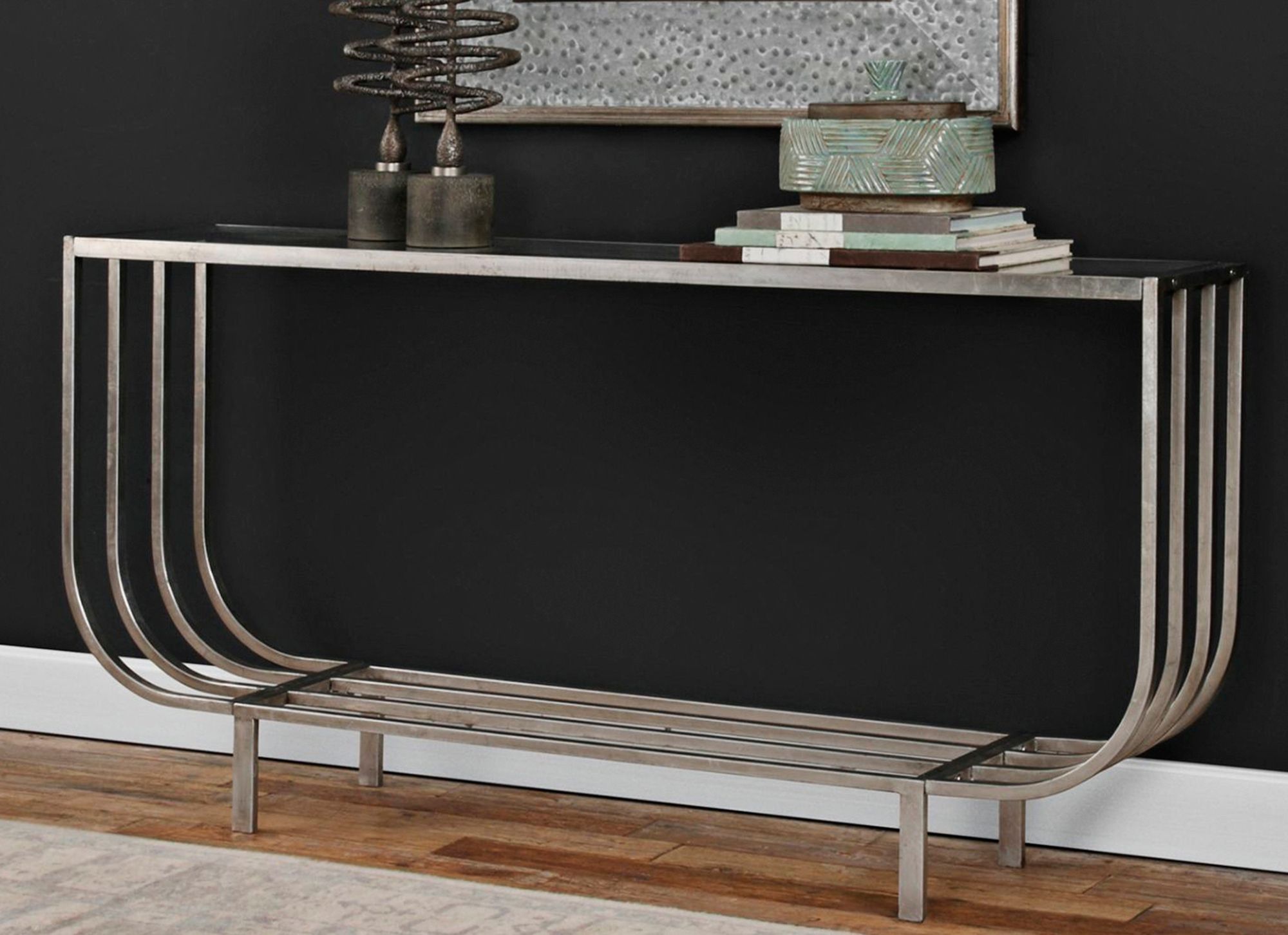 Arlice 67 3/4" Wide Clear Glass Silver Leaf Console Table