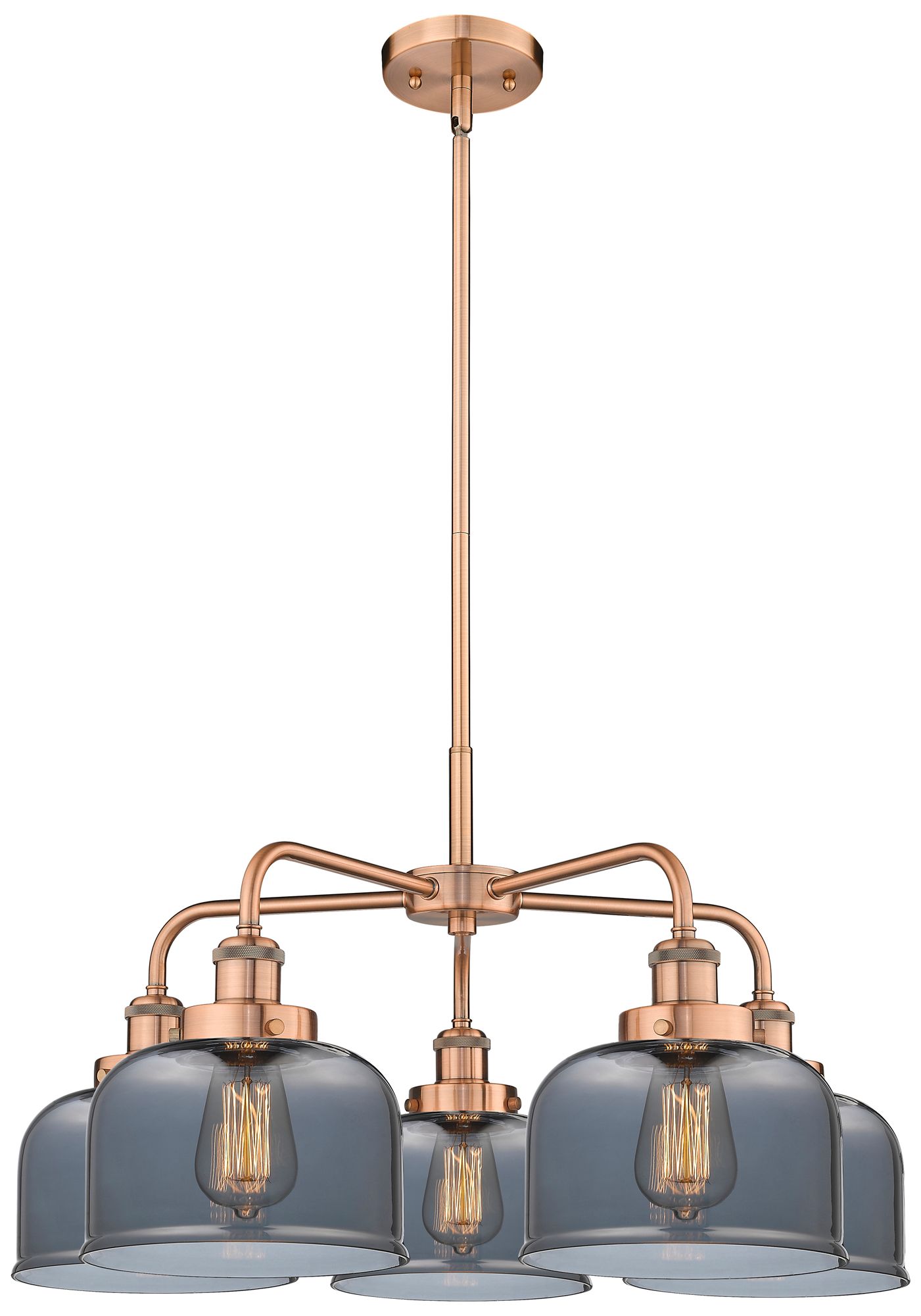 Bell 26"W 5 Light Antique Copper Stem Hung Chandelier w/ Smoke Glass S
