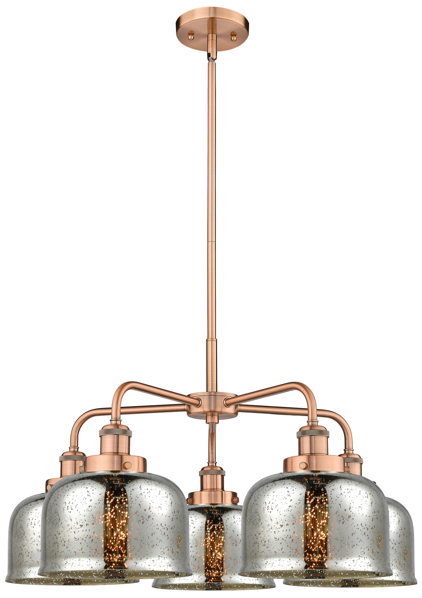 Bell 26"W 5 Light Antique Copper Stem Hung Chandelier w/ Mercury Shade