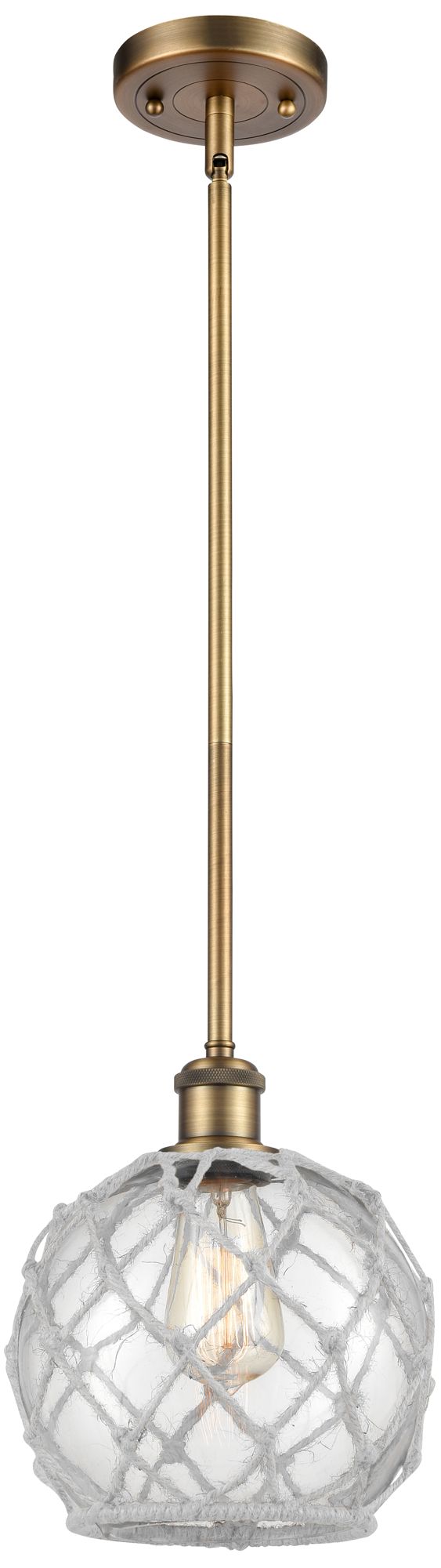 Farmhouse 8"W Stem Hung Brushed Brass Mini Pendant w/ Clear and White