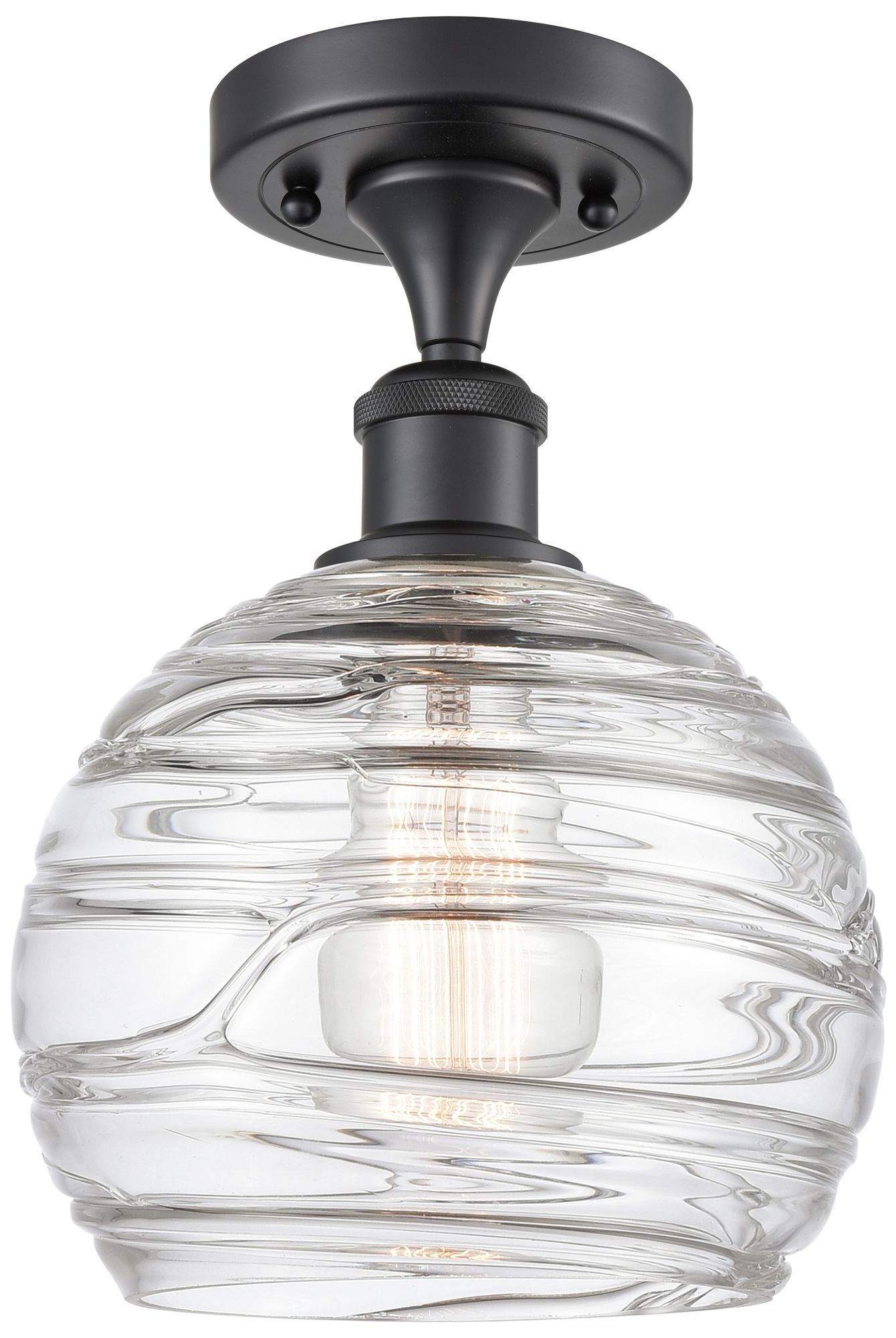Athens 8" Matte Black Semi Flush Mount w/ Clear Deco Swirl Shade