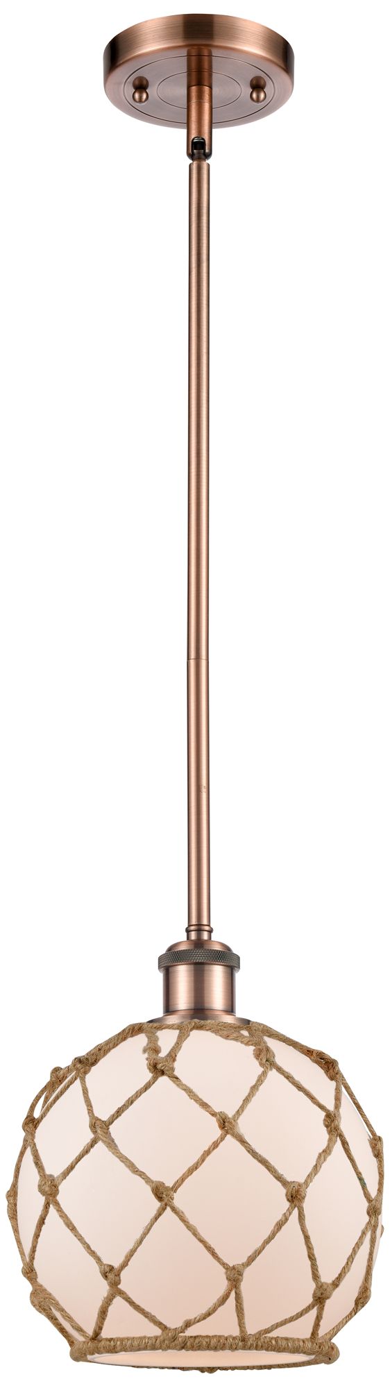 Farmhouse Rope 8"W Copper Stem Mini Pendant w/ White and Brown Rope Sh