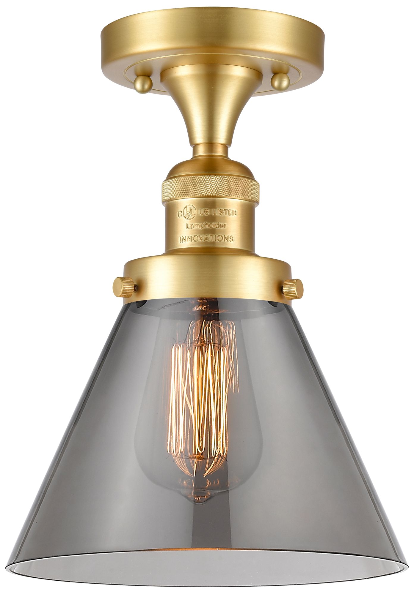 Cone 7.75" Wide Satin Gold Semi Flush Mount w/ Plated Smoke Shade
