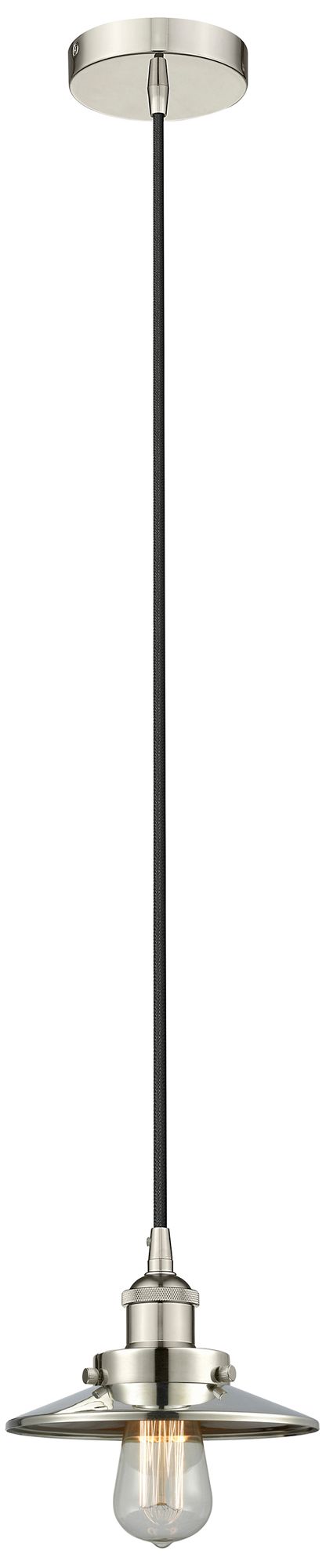 Railroad 8"W Polished Nickel Corded Mini Pendant w/ Polished Nickel Sh