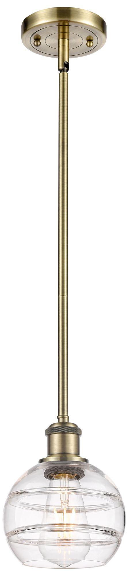 Ballston Rochester 5.88"W Antique Brass Stemmed Mini Pendant w/ Clear