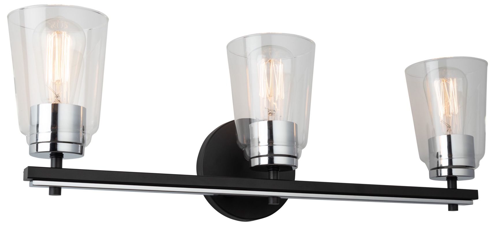 Essex 25" Wide 3-Light Black Bathroom Vanity With Clear Glass Shade