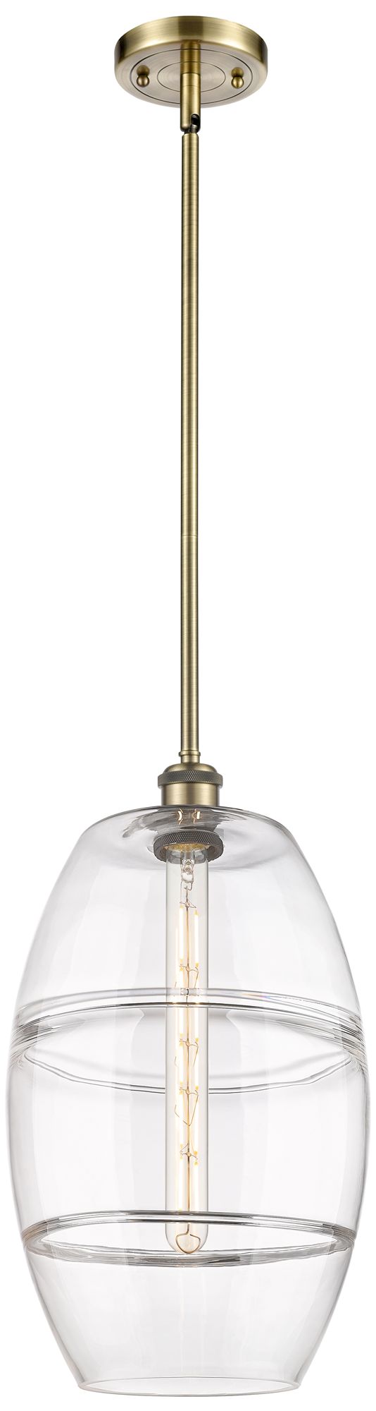 Ballston Vaz 10" Wide Antique Brass Stem Hung Mini Pendant With Clear