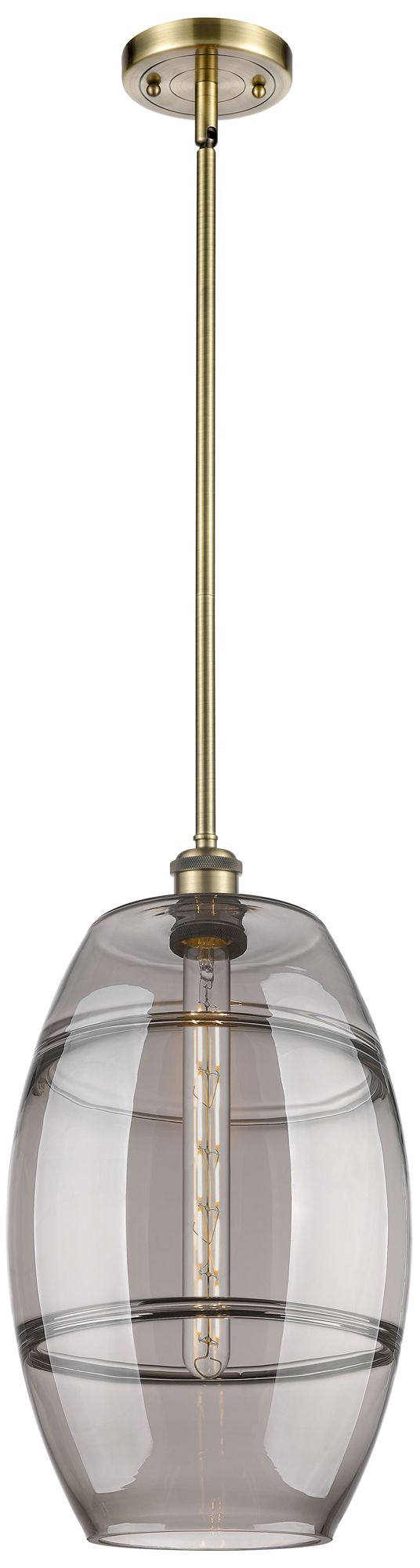 Ballston Vaz 10"W Antique Brass Stemmed Mini Pendant w/ Light Smoke Sh