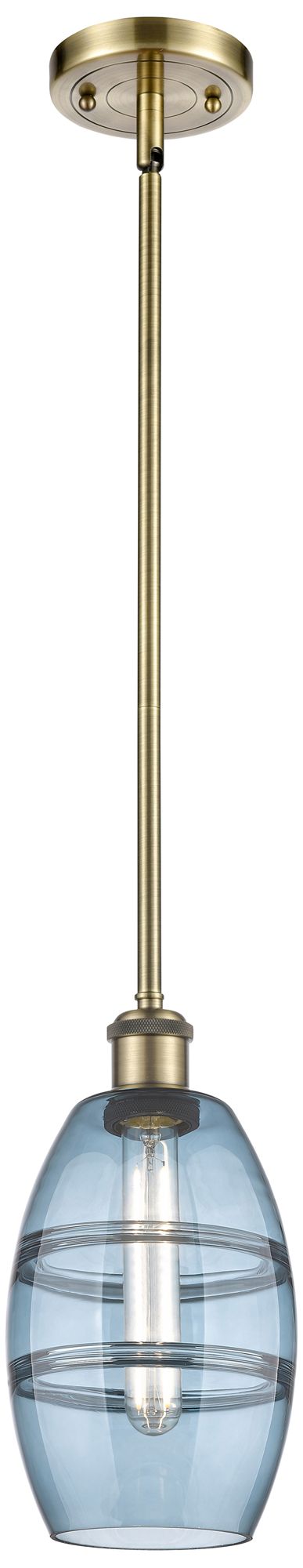 Ballston Vaz 5.88"W Antique Brass Stemmed Mini Pendant w/ Blue Shade