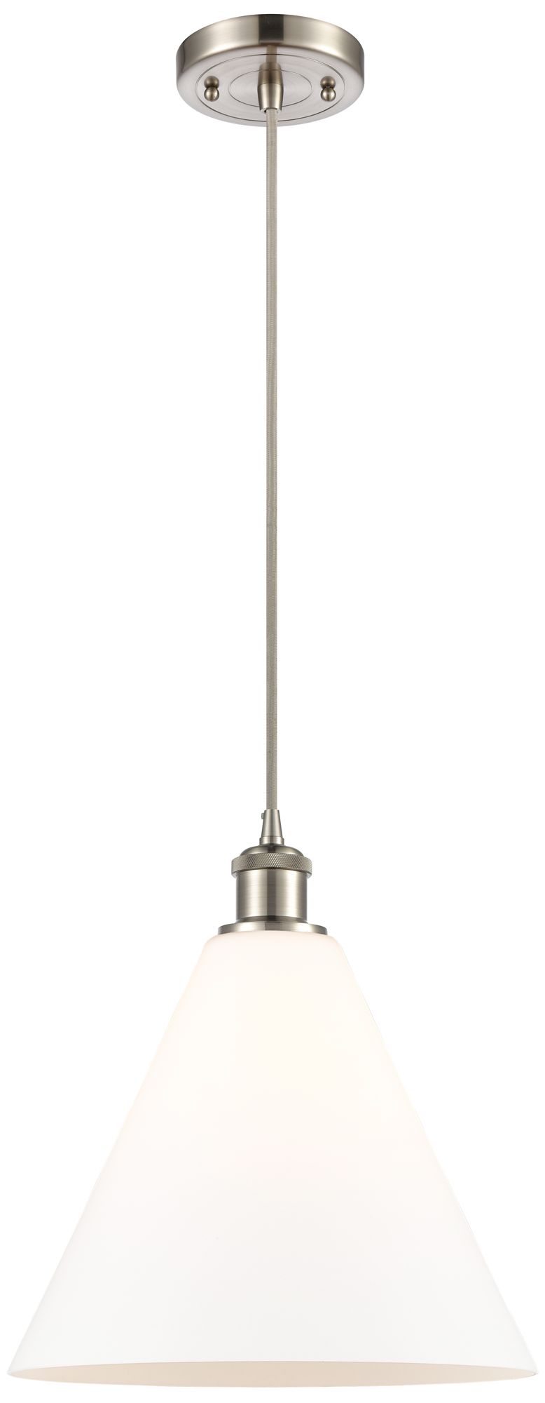 Ballston Berkshire 12" Brushed Nickel Corded Mini Pendant w/ White Sha