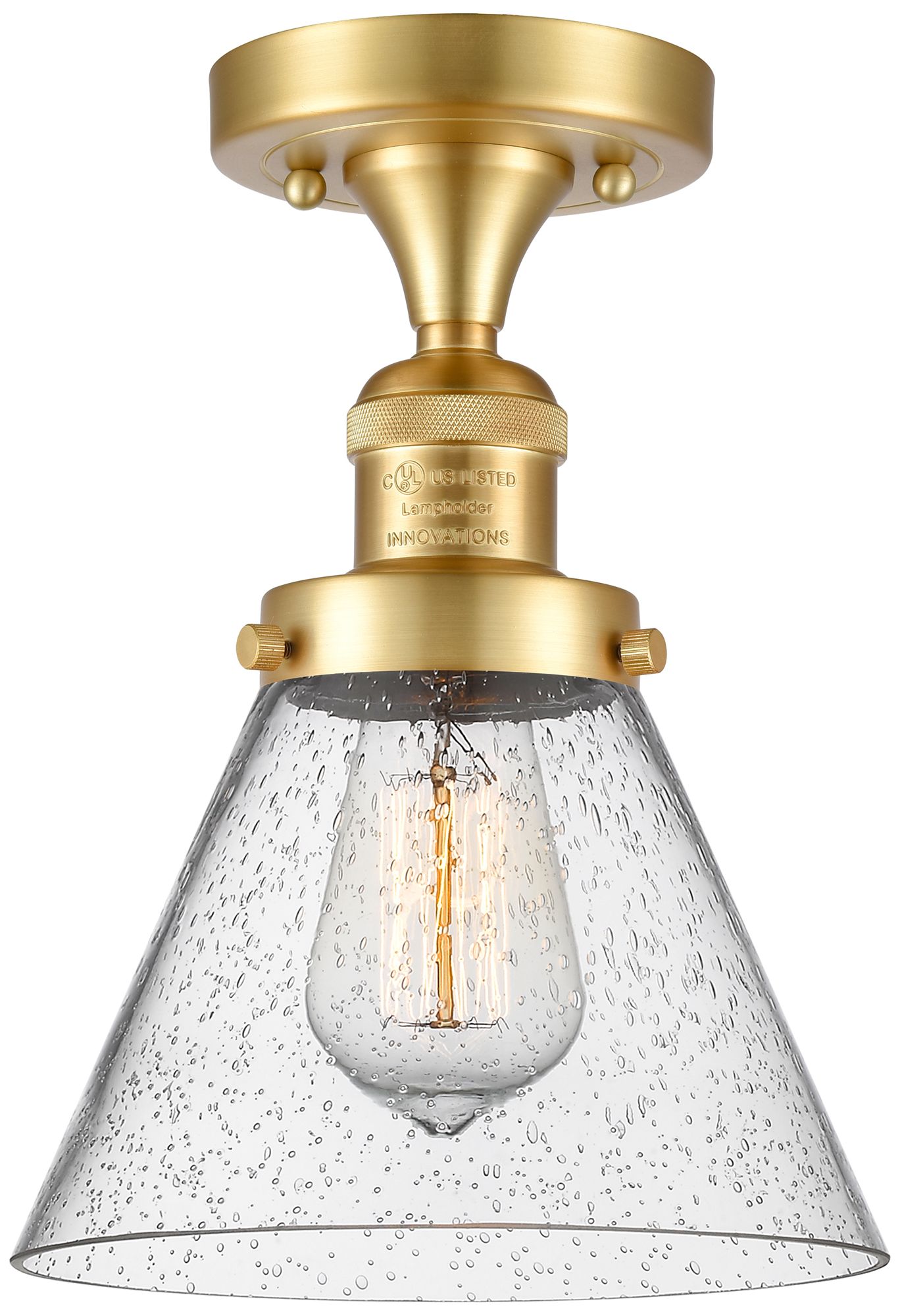 Cone 7.75" Wide Satin Gold Semi Flush Mount w/ Seedy Shade