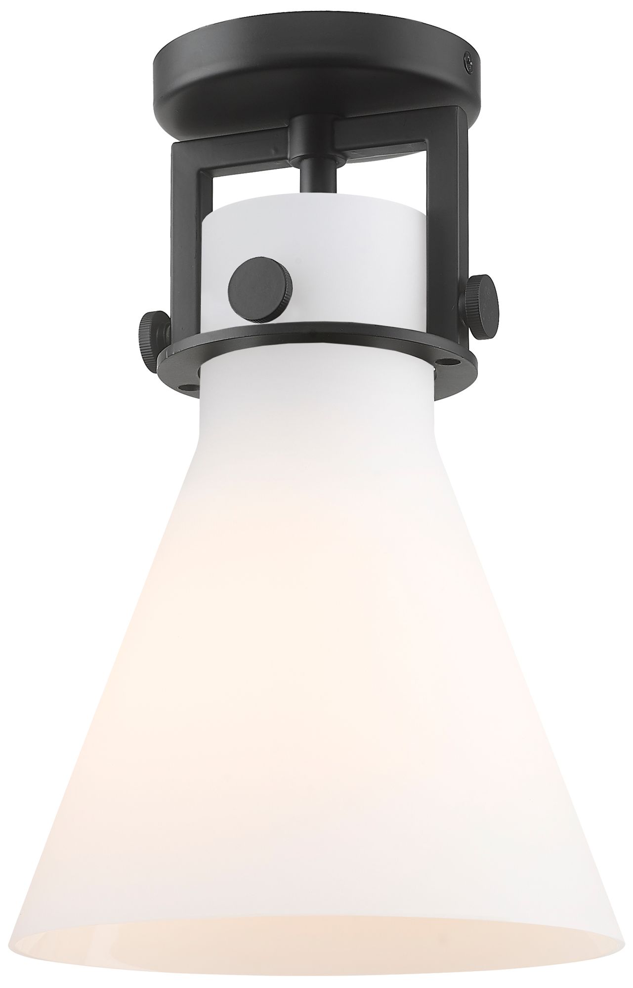 Newton Cone 8" Wide Matte Black Flush Mount with White Shade