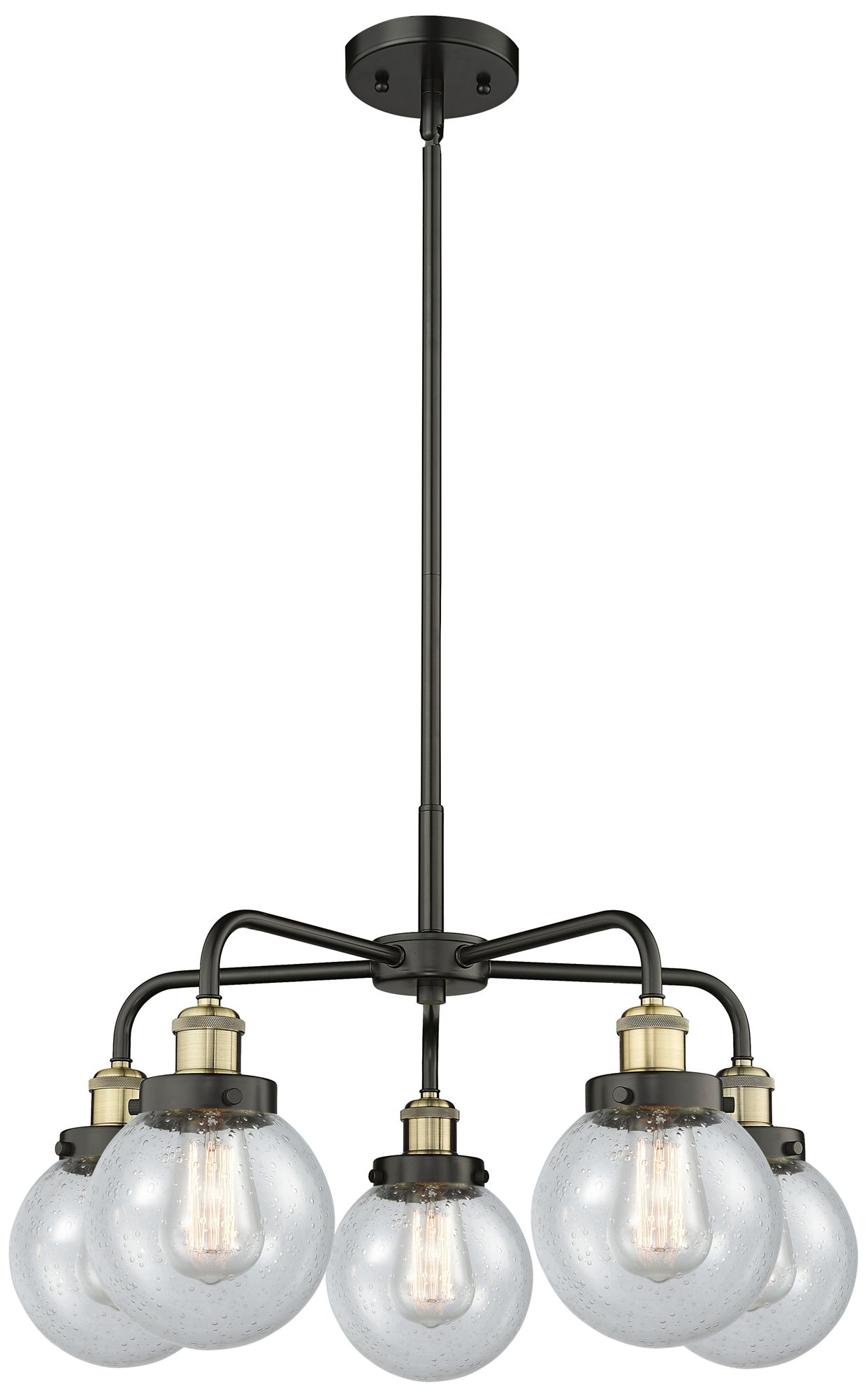 Beacon 24"W 5 Light Black Antique Brass Stem Hung Chandelier w/ Seedy