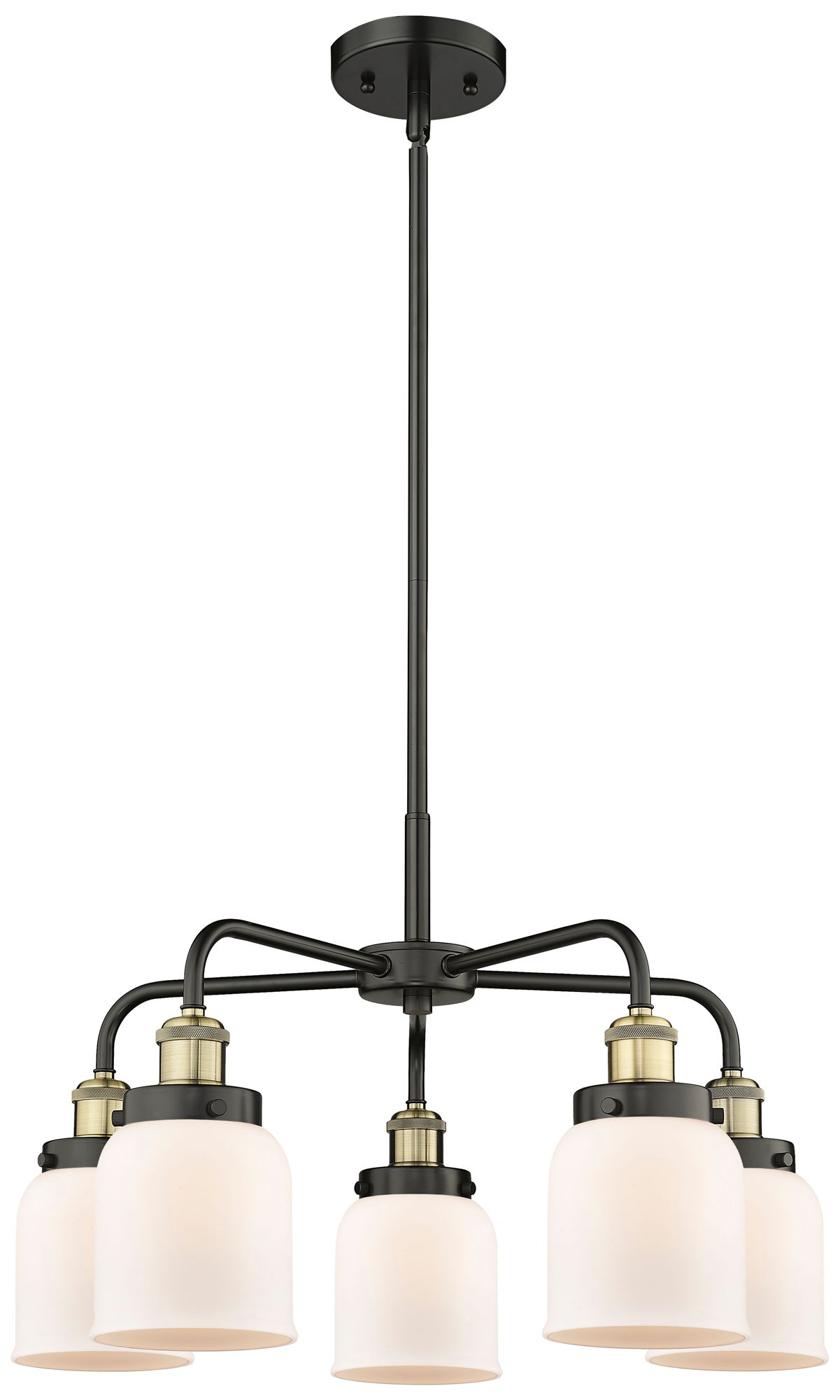 Bell 23"W 5 Light Black Antique Brass Stem Hung Chandelier w/ White Sh