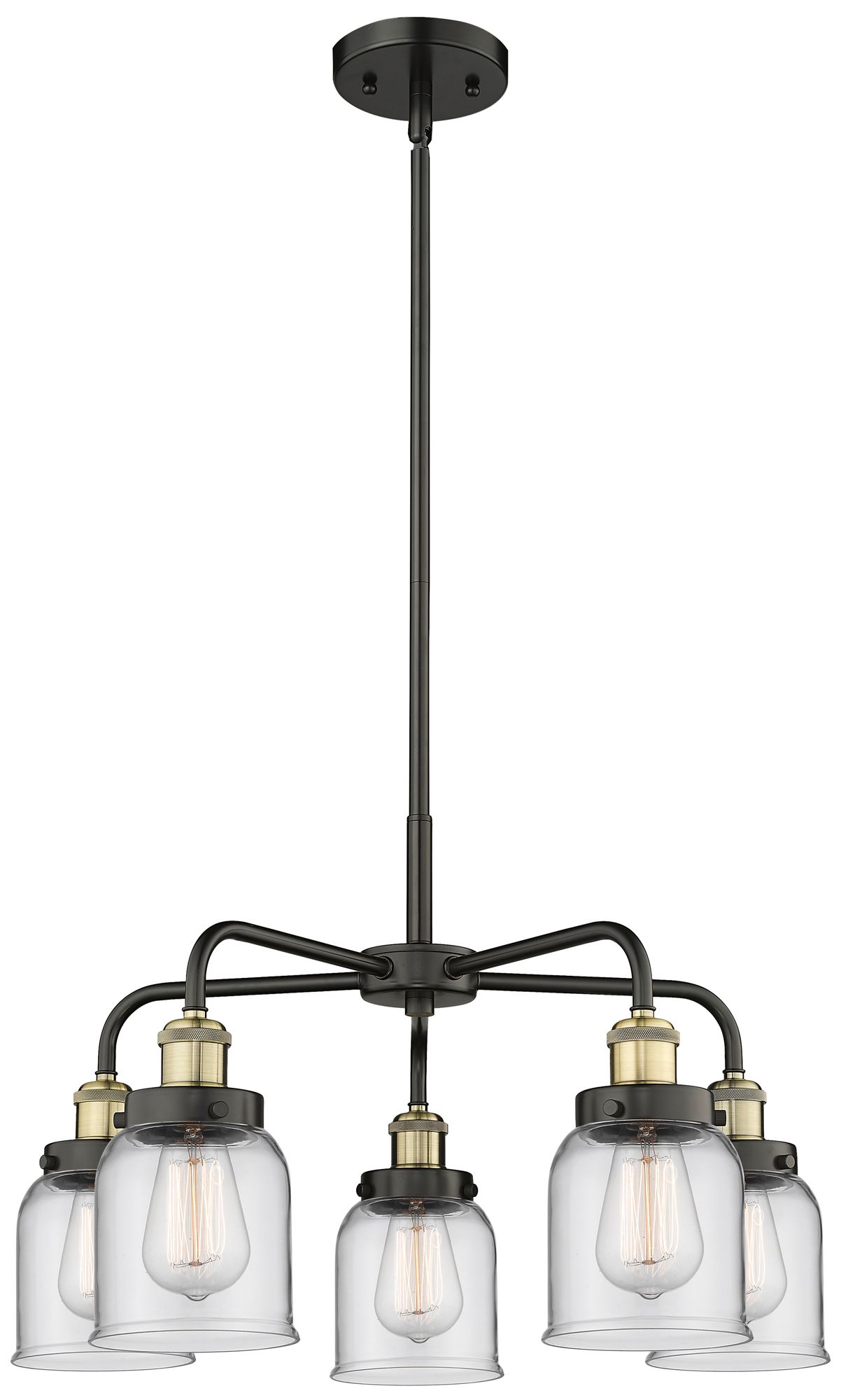 Bell 23"W 5 Light Black Antique Brass Stem Hung Chandelier w/ Clear Sh