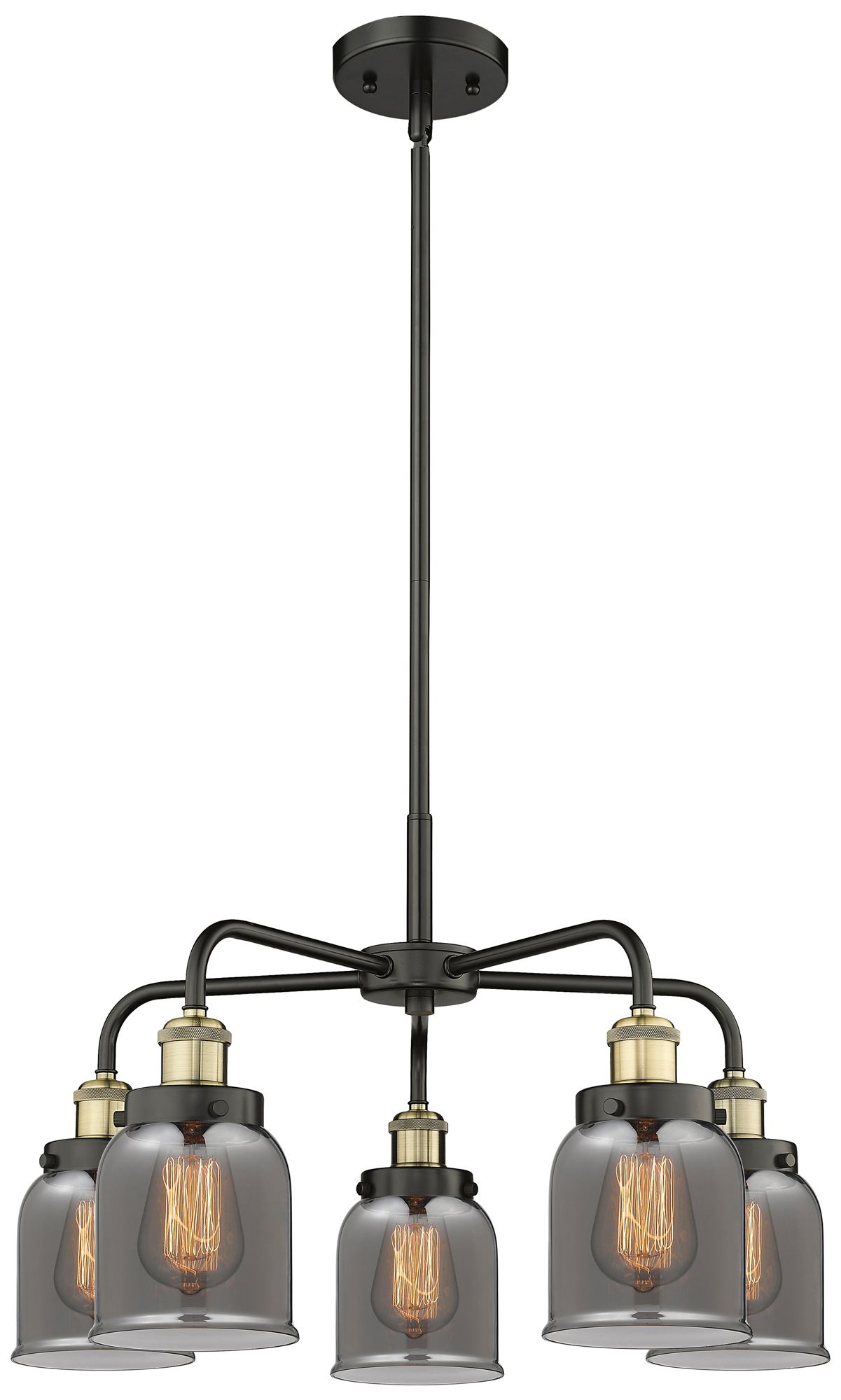 Bell 23"W 5 Light Black Antique Brass Stem Hung Chandelier w/ Smoke Sh