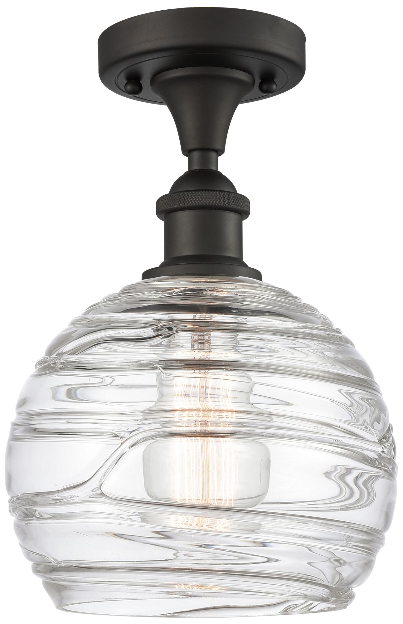 Athens 8" Oil Rubbed Bronze Semi Flush Mount w/ Clear Deco Swirl Shade